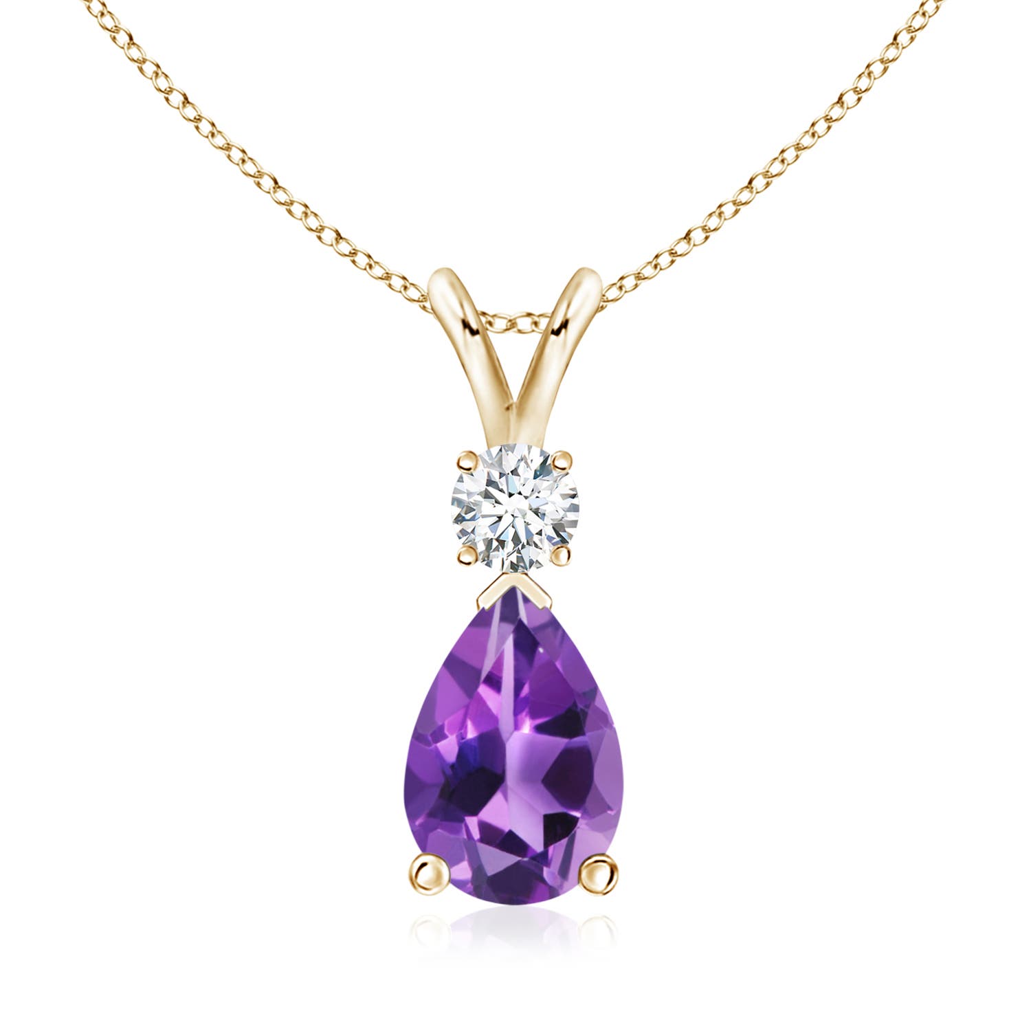 Angara Natural 10x7mm Amethyst Teardrop Pendant Necklace in 14K Yellow Gold for Women