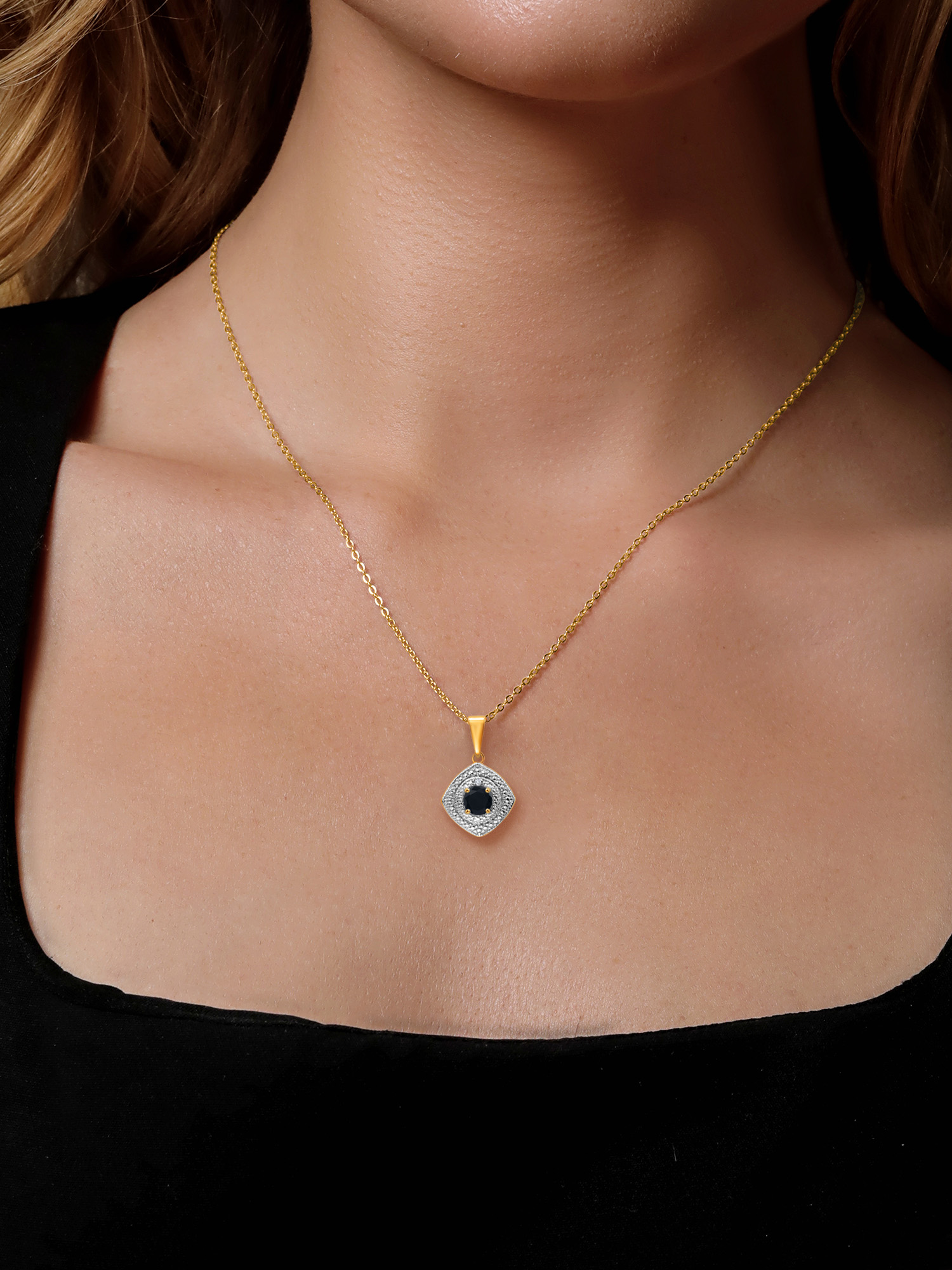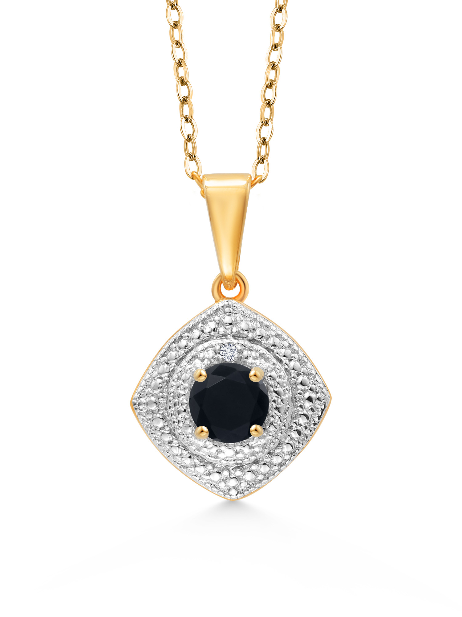 Gem Stone King 0.48 Ct Black Onyx White Diamond 18K Yellow Gold Plated Silver Pendant with Chain