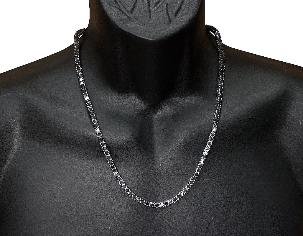 Solitaires 20 Pointer 21.44 CT AA Black Diamonds Tennis Chain Necklace White Gold 4.5MM 18"-22"