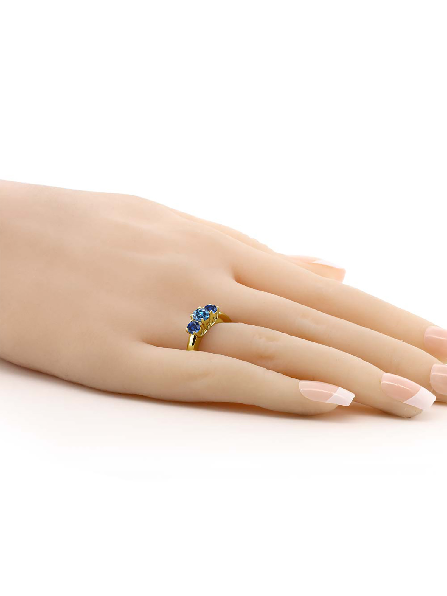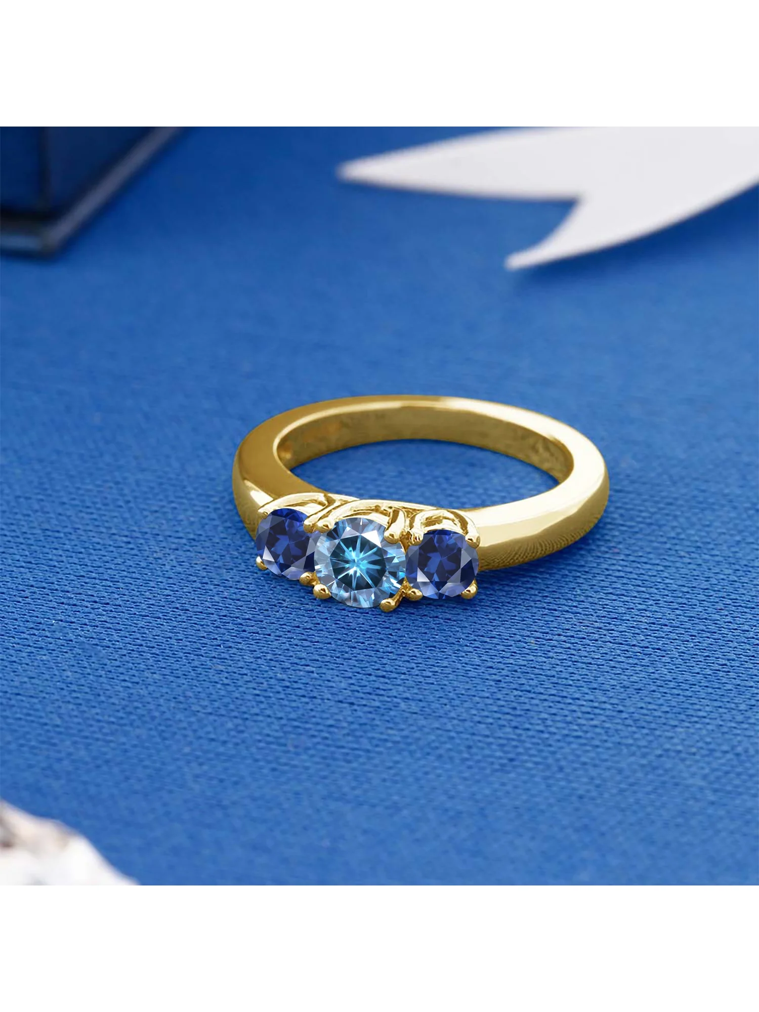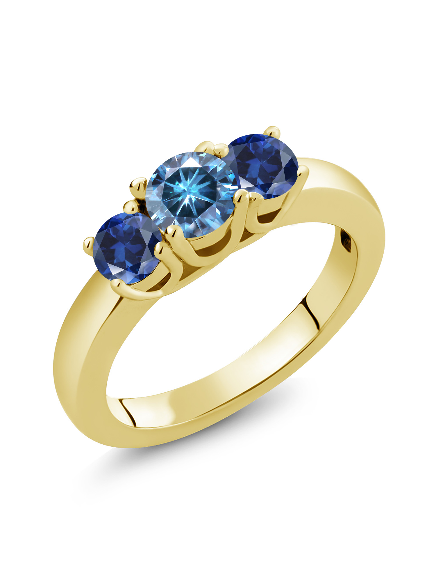 Gem Stone King 18K Yellow Gold Plated Silver Ring Persian Blue Moissanite Created Sapphire (1.00 Cttw)
