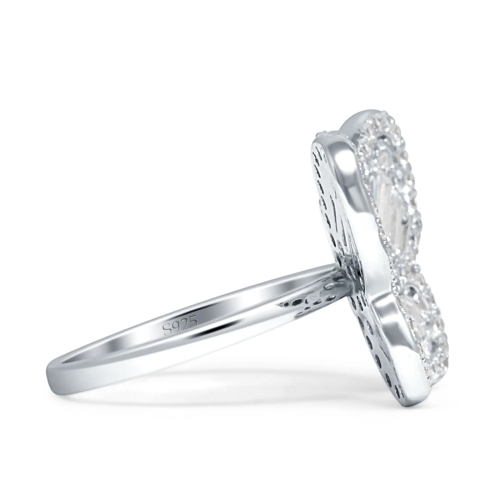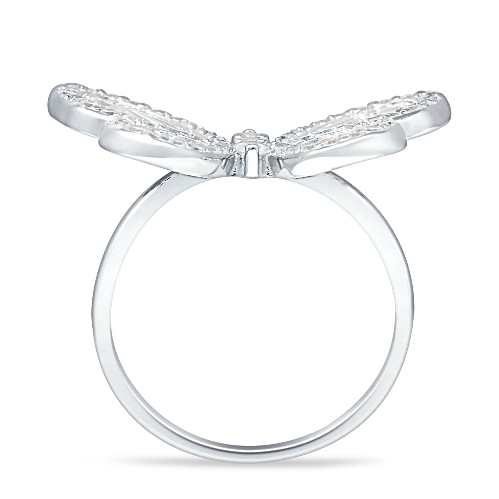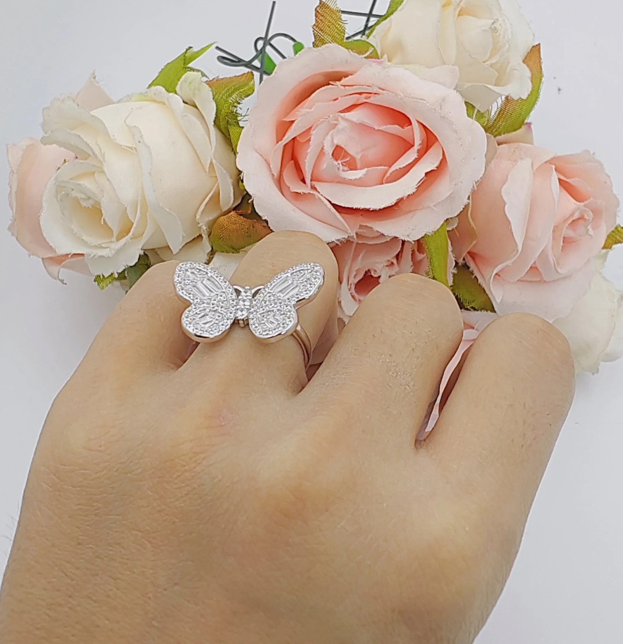 Cluster Butterfly Ring Baguette Cubic Zirconia White Tone 925 Sterling Silver, Size 5