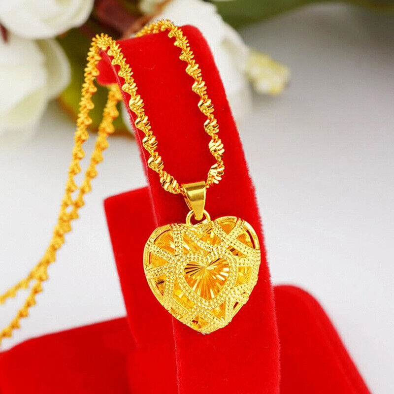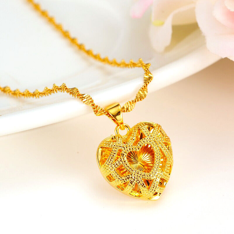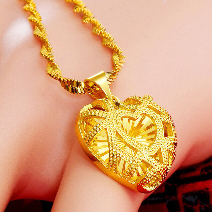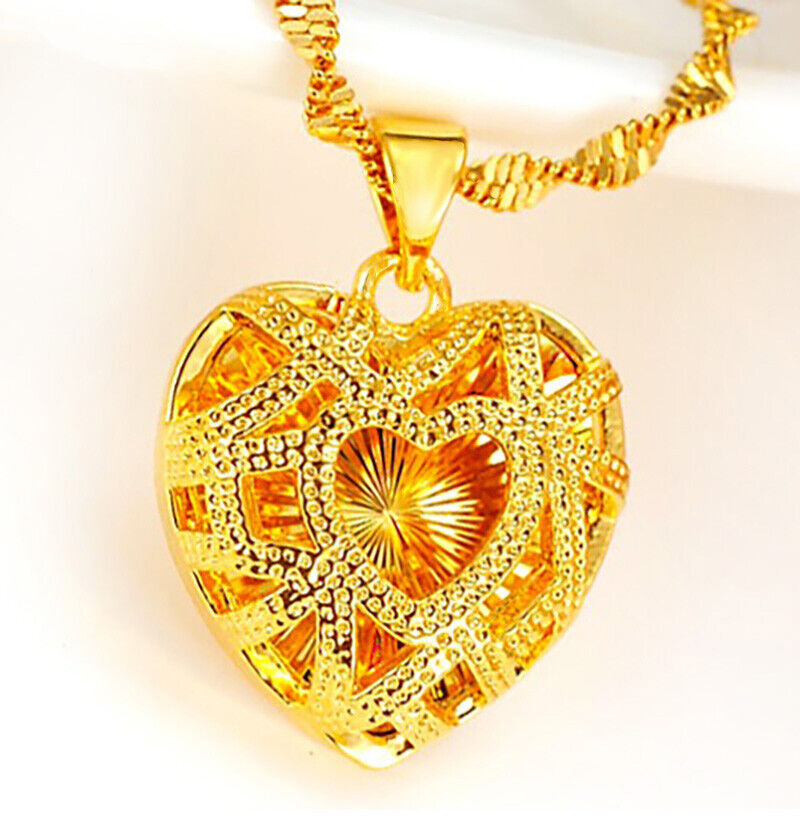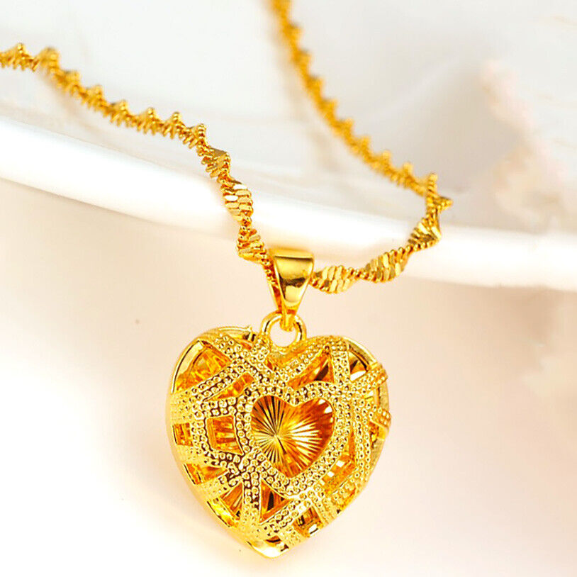 18k Yellow Gold Filled Over Sterling Silver Womens Heart Chain Pendant Necklace