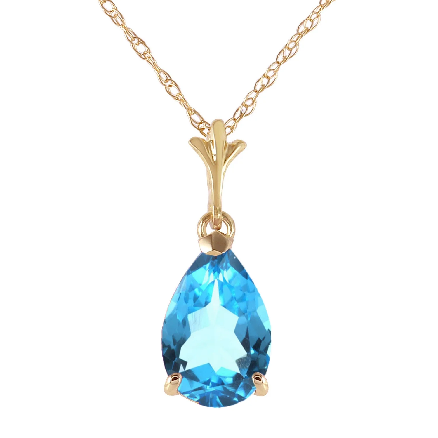 Galaxy Gold 14k 22" Yellow Gold Pear-shaped Blue Topaz Drop Pendant Necklace