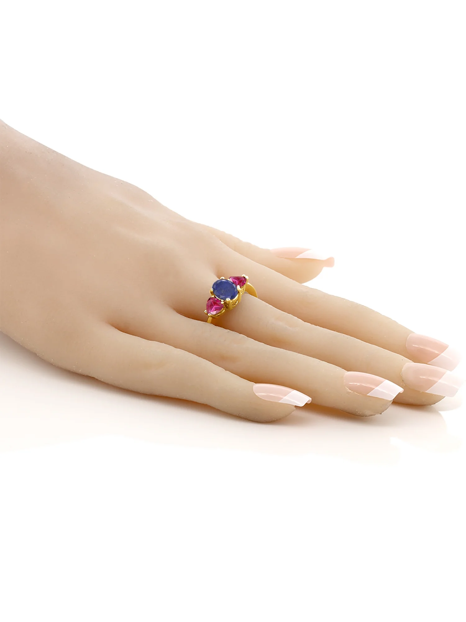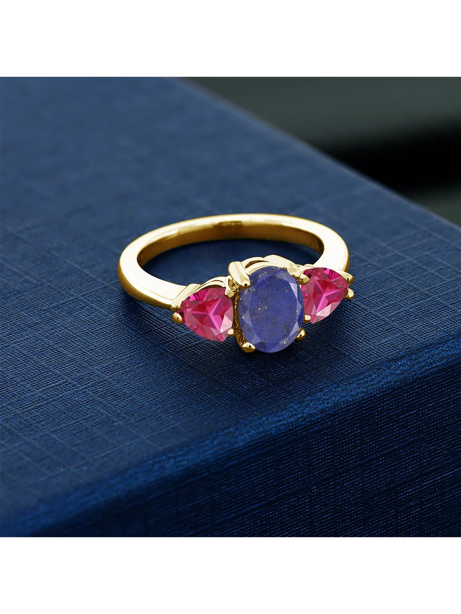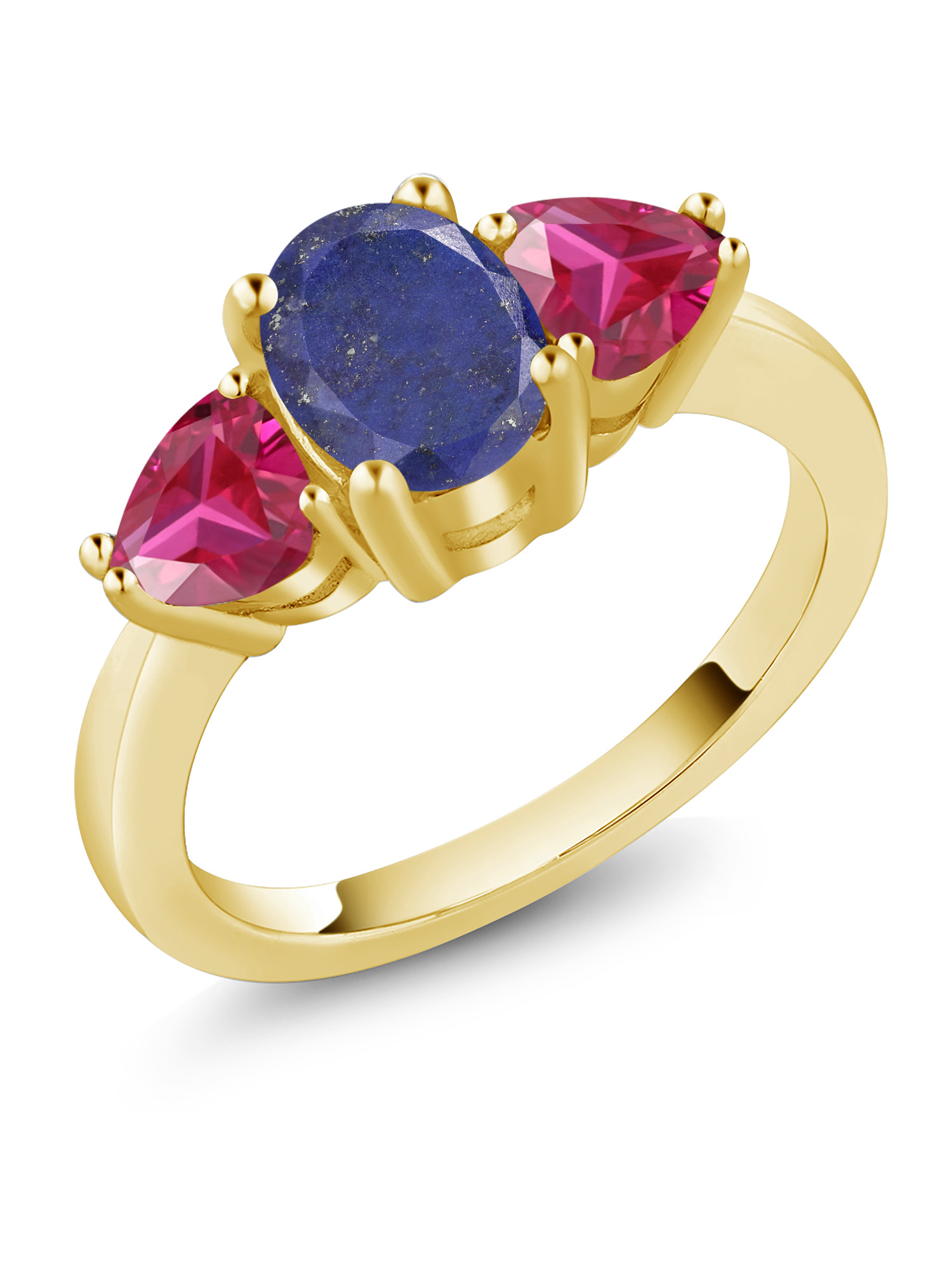 Gem Stone King 2.26 Ct Oval Blue Lapis Red Created Ruby 18K Yellow Gold Plated Silver Ring
