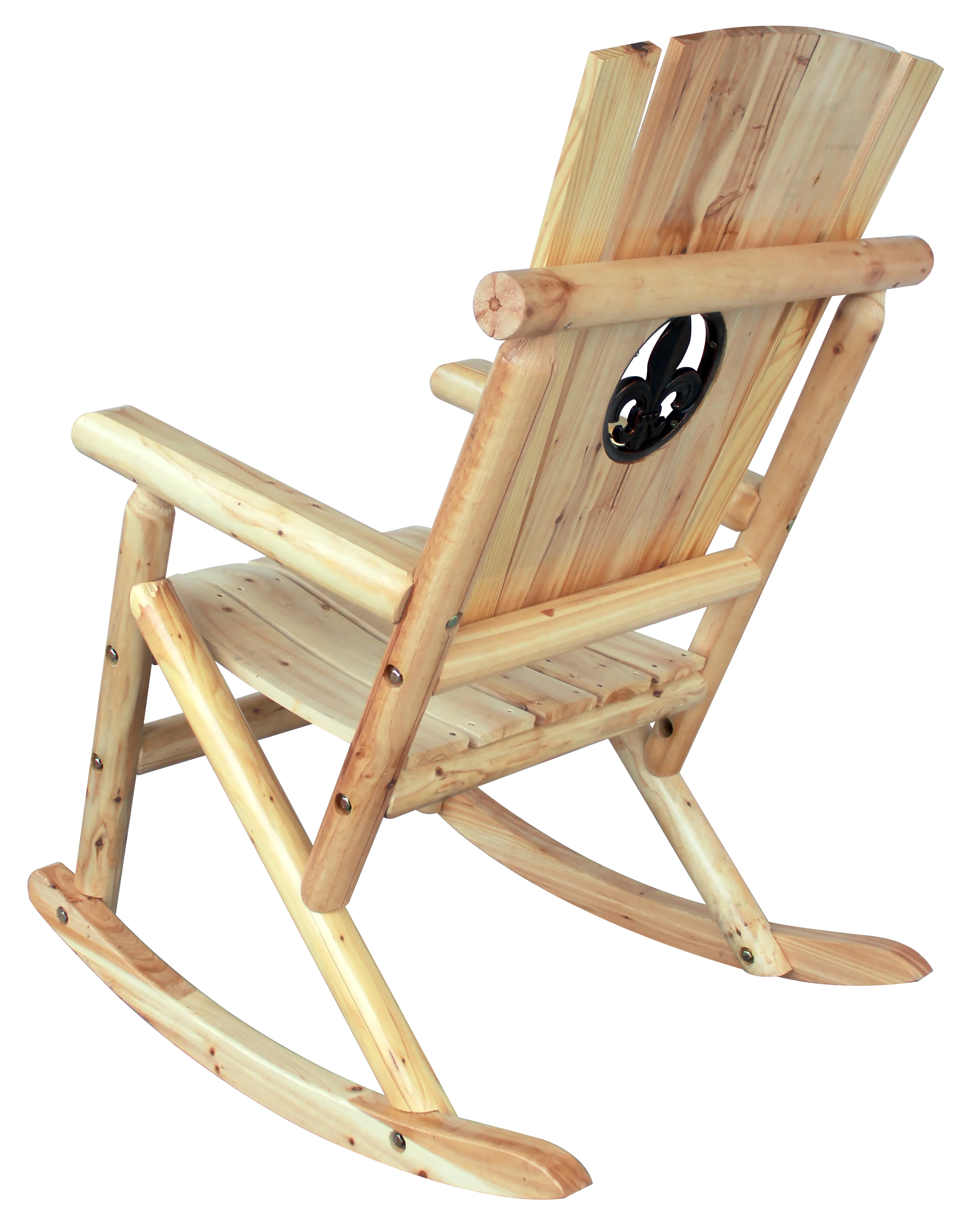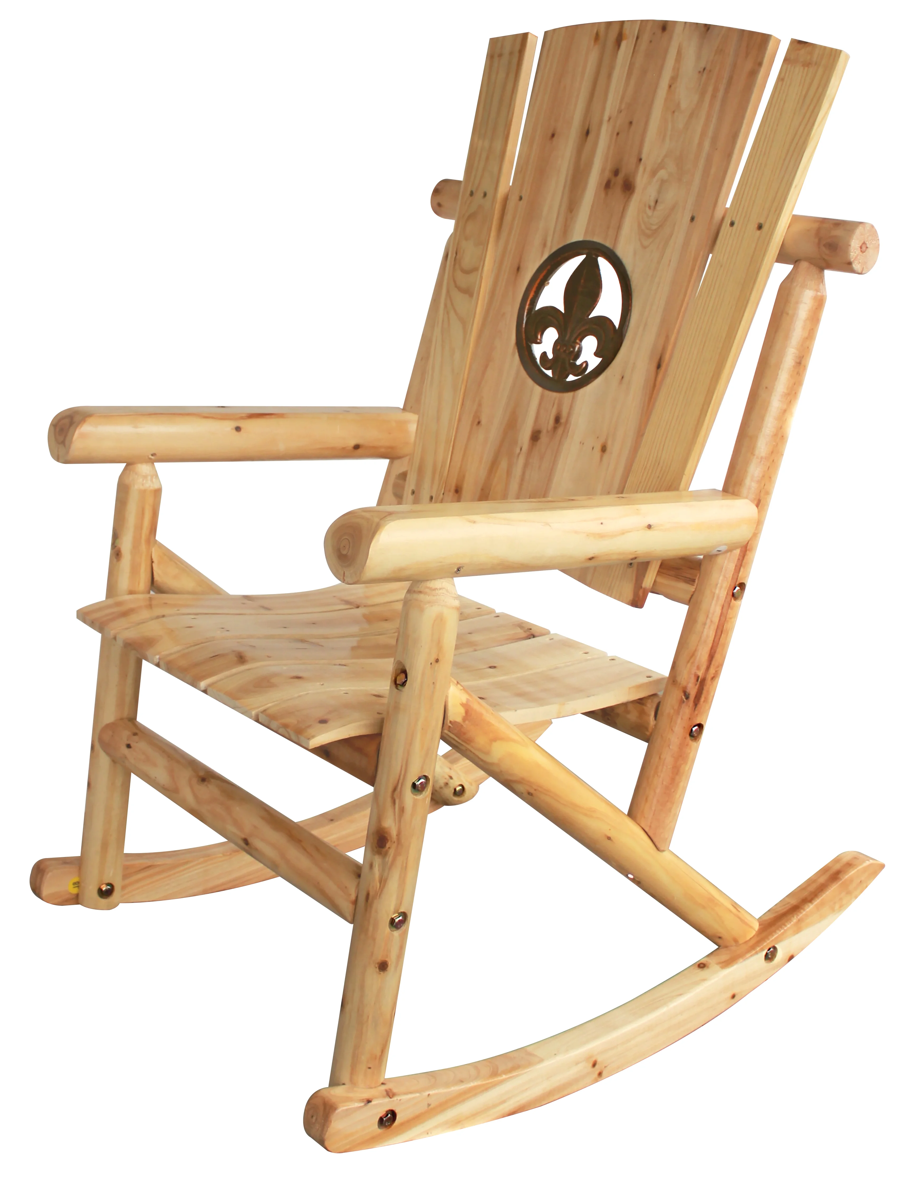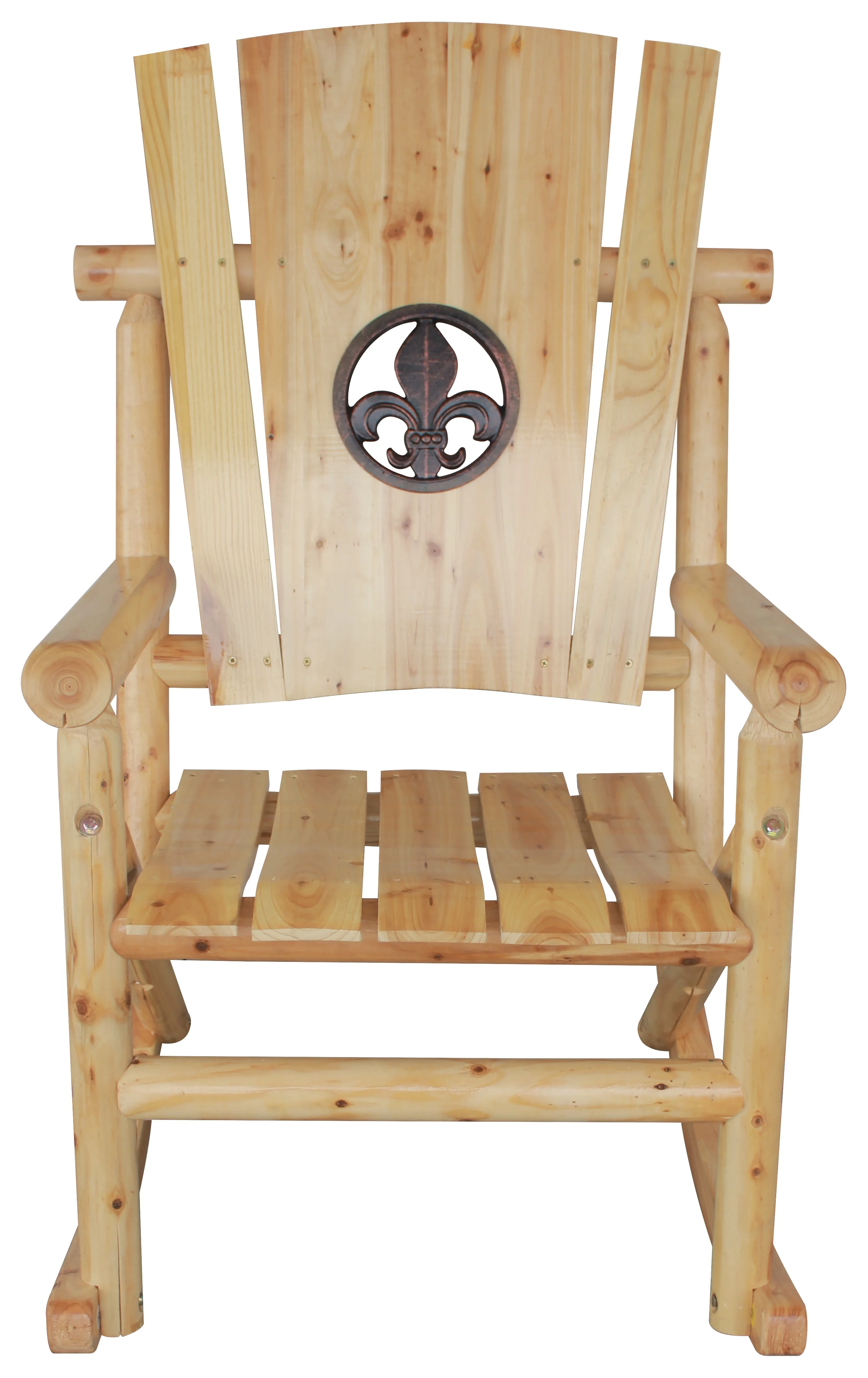 Leigh Country TX 95102 Aspen Adult Outdoor Wood Rocker with Fleur-De-Lis Medallion - Natural