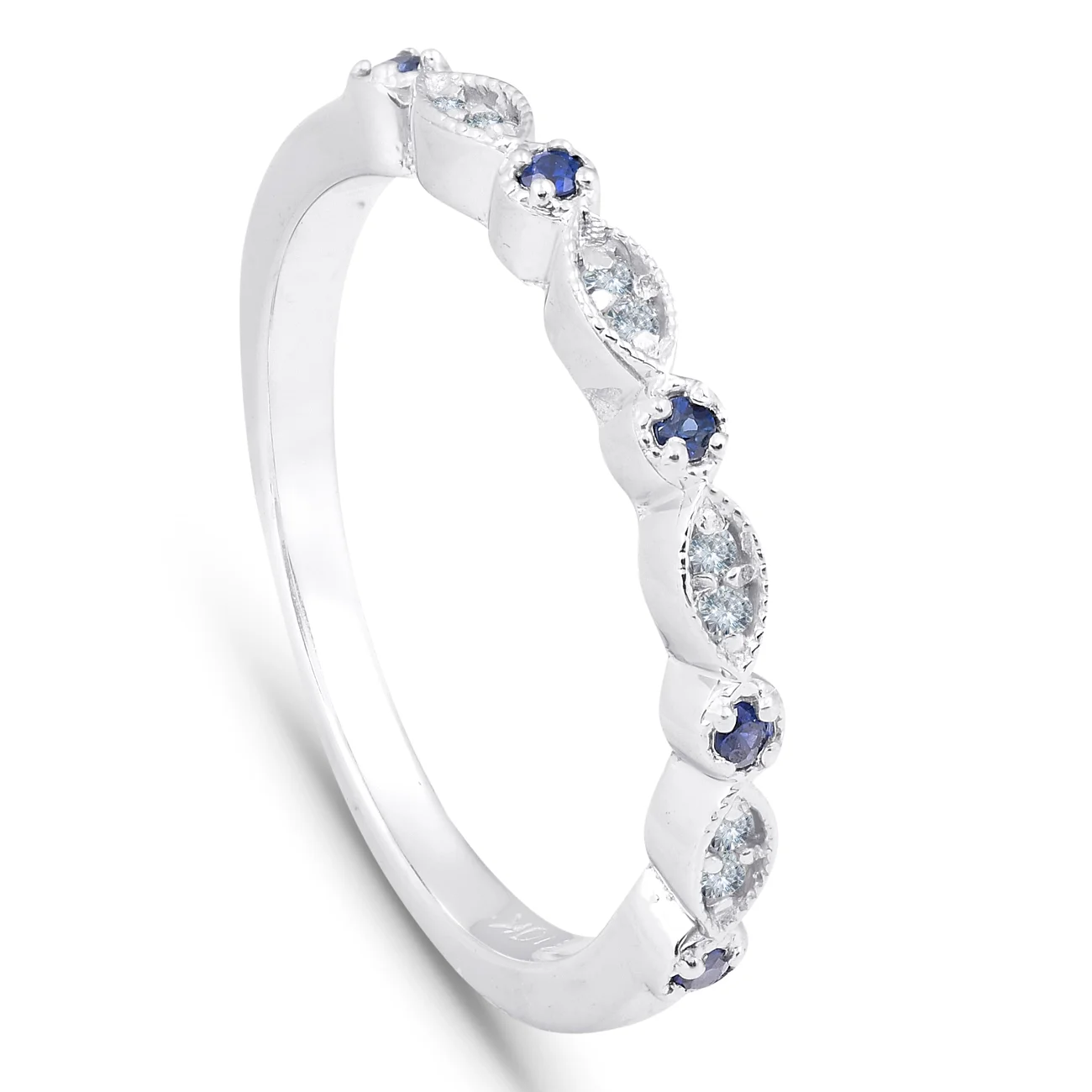 Pompeii3 1/5 ct Blue Sapphire & Diamond Wedding Ring Stackable Band 10k White Gold