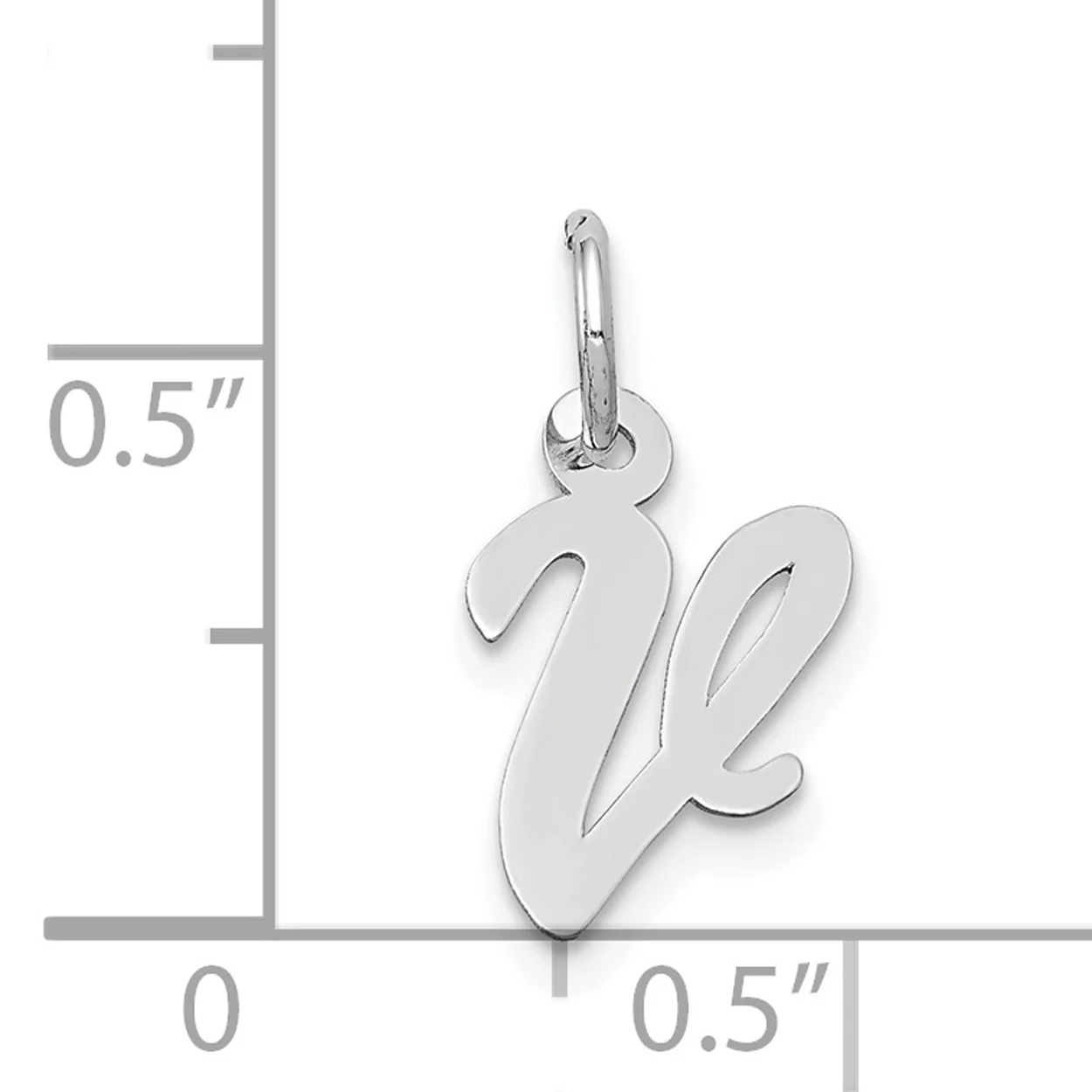 Carat In Karats 14K White Gold Polished Rhodium Plated Small Script Letter V Initial Pendant Charm
