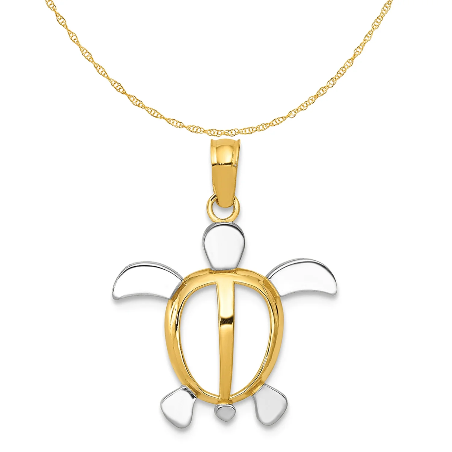 Carat In Karats 14K White Gold Polished Rhodium Plated Casted Script Letter T Initial Pendant Charm