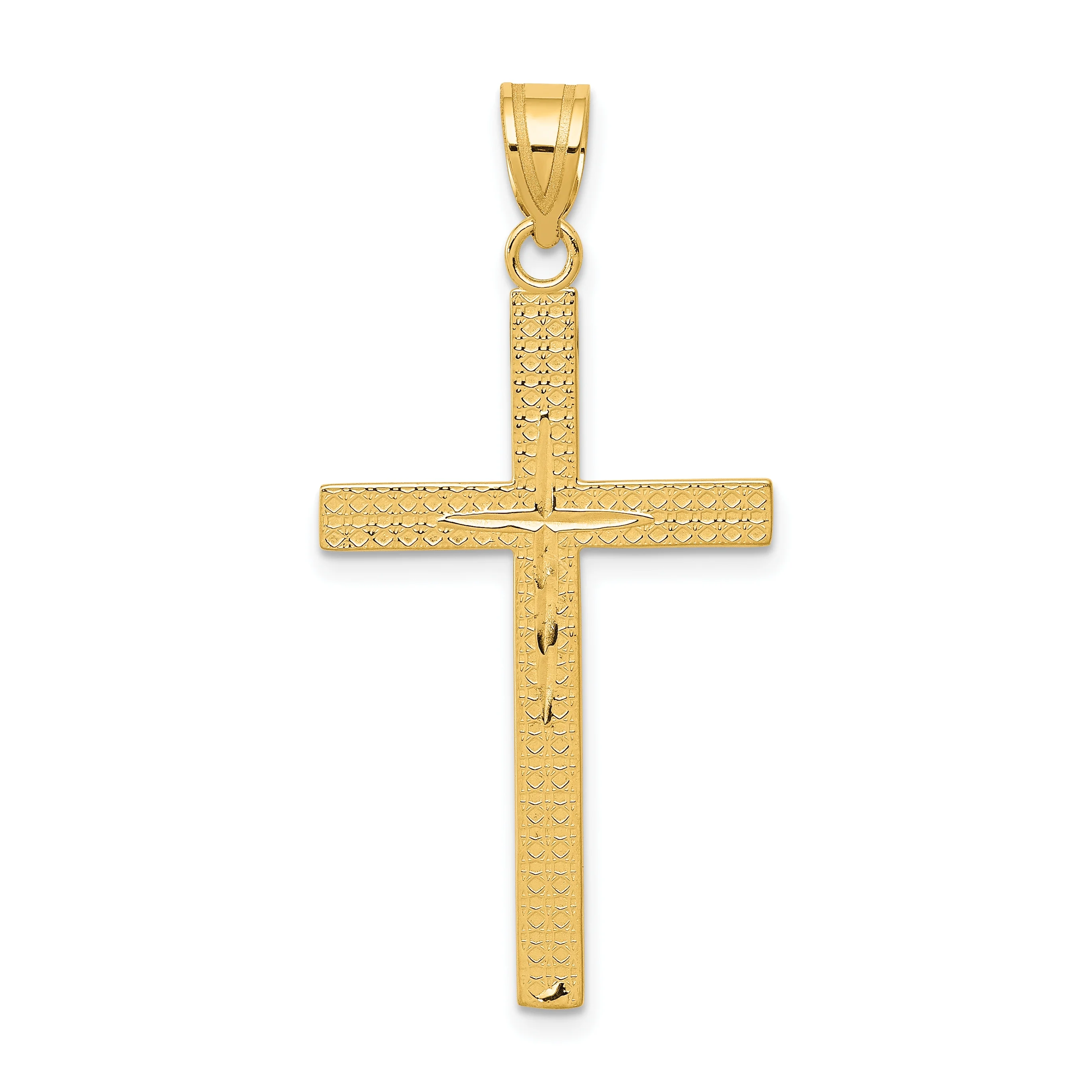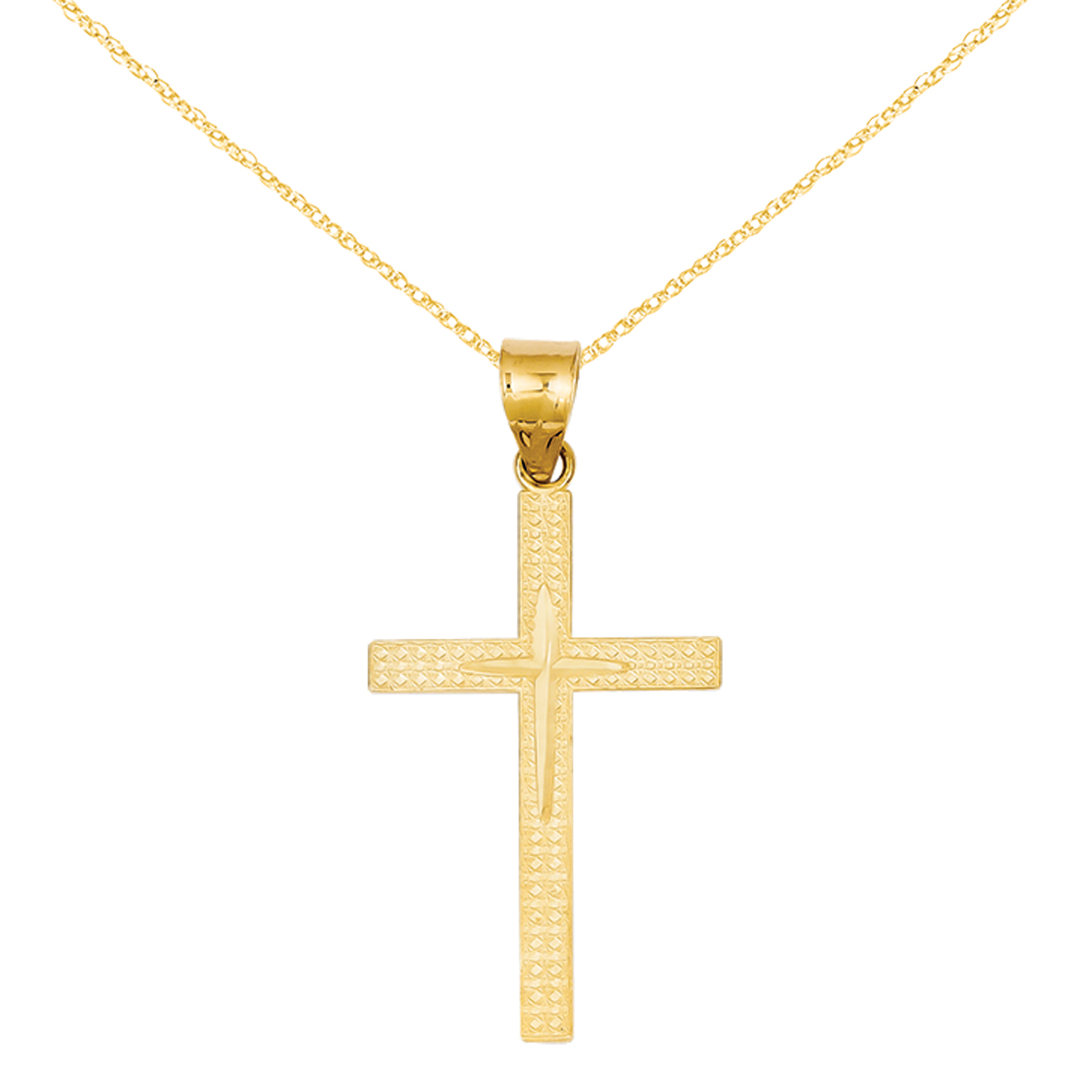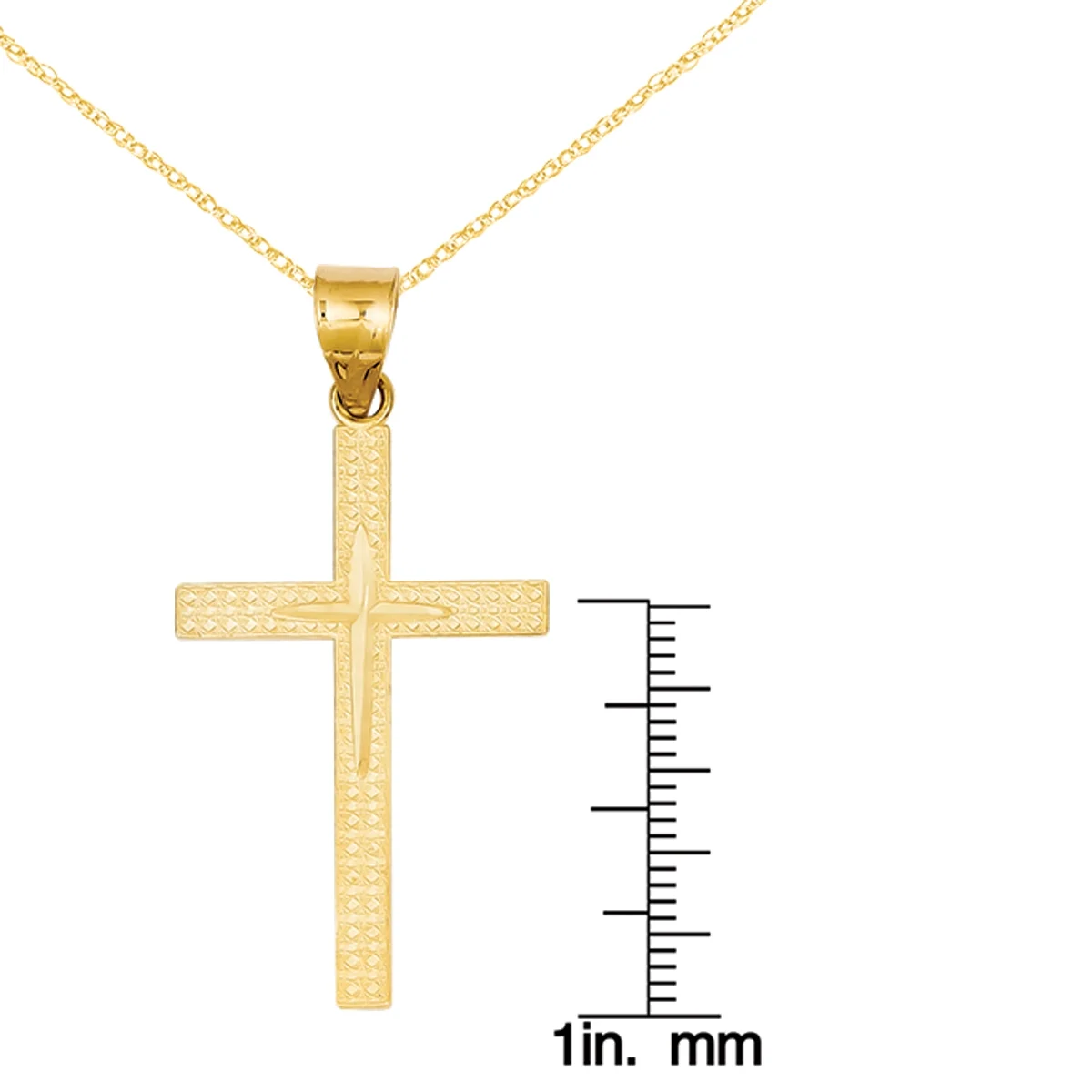 Primal Gold 14 Karat Yellow Gold Diamond-Cut Latin Cross Pendant with 18-inch Cable Rope Chain