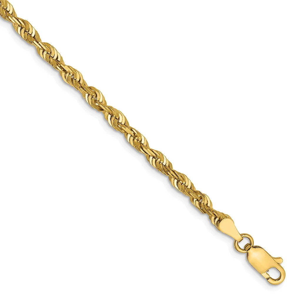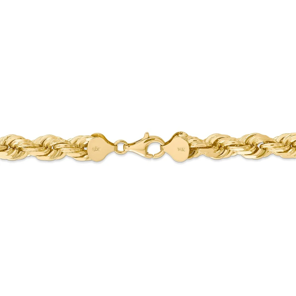 Real 14kt Yellow Gold 8mm Diamond Cut Rope with Fancy Lobster Clasp Chain; for Adults and Teens; for Women and Men