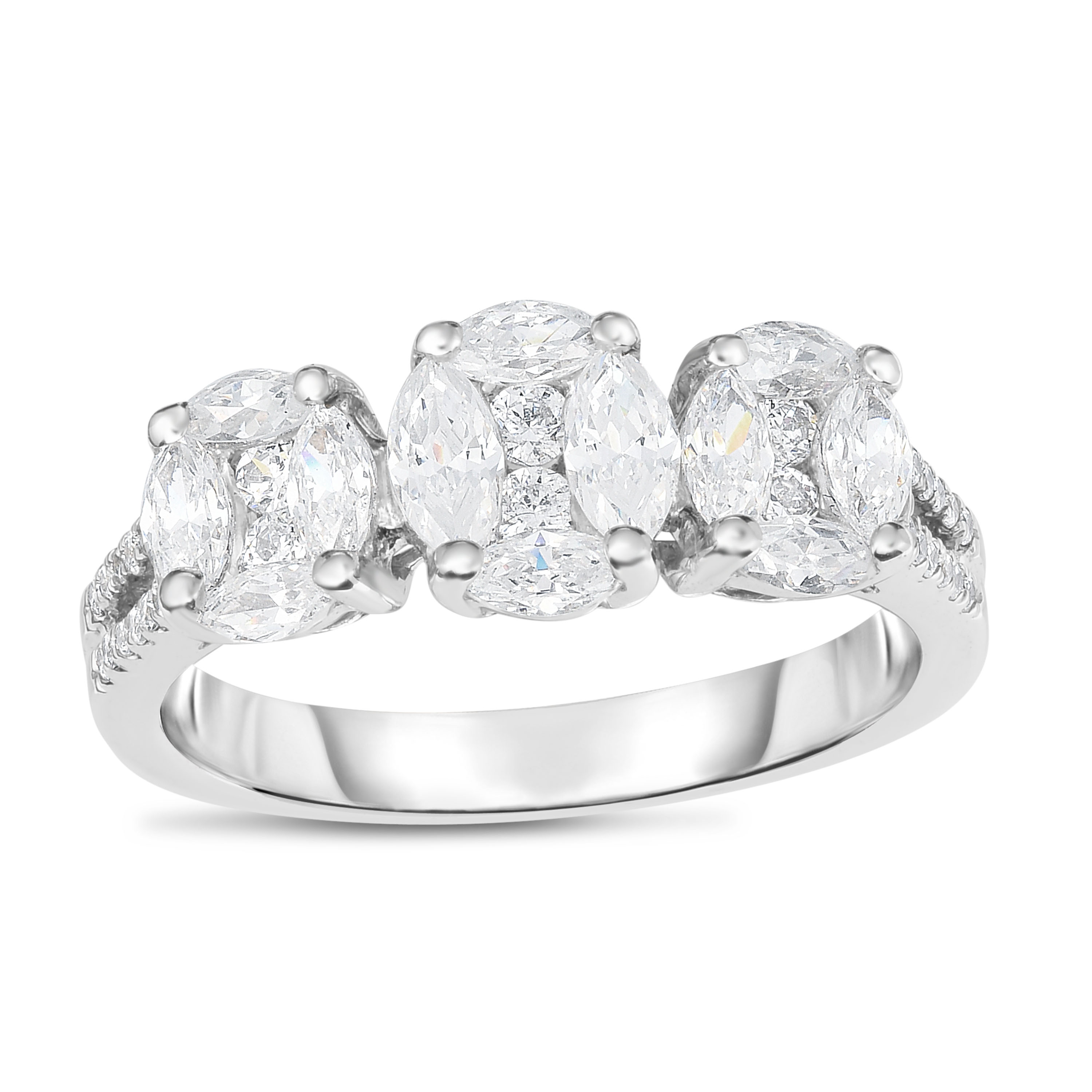 1 CT. T.W. Marquise and Princess-Cut Composite Diamond Three Stone Engagement Ring in 14K White Gold