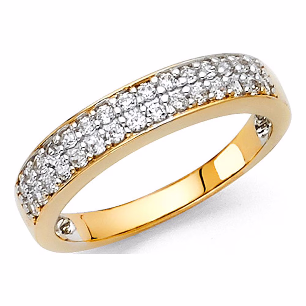 CZ Wedding Band 14k Yellow Gold Anniversary Round CZ Band Bridal CZ Ring Pave Set Solid Women Size 7