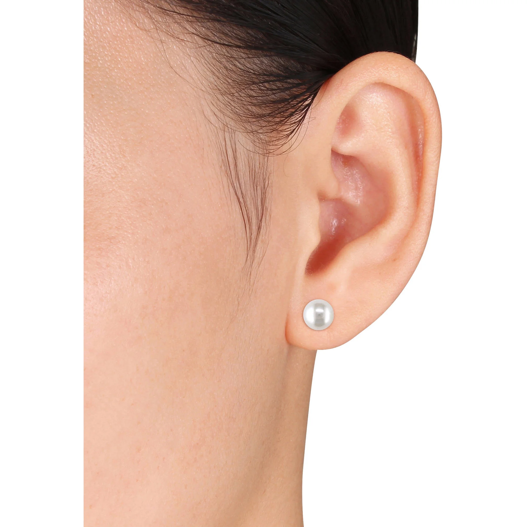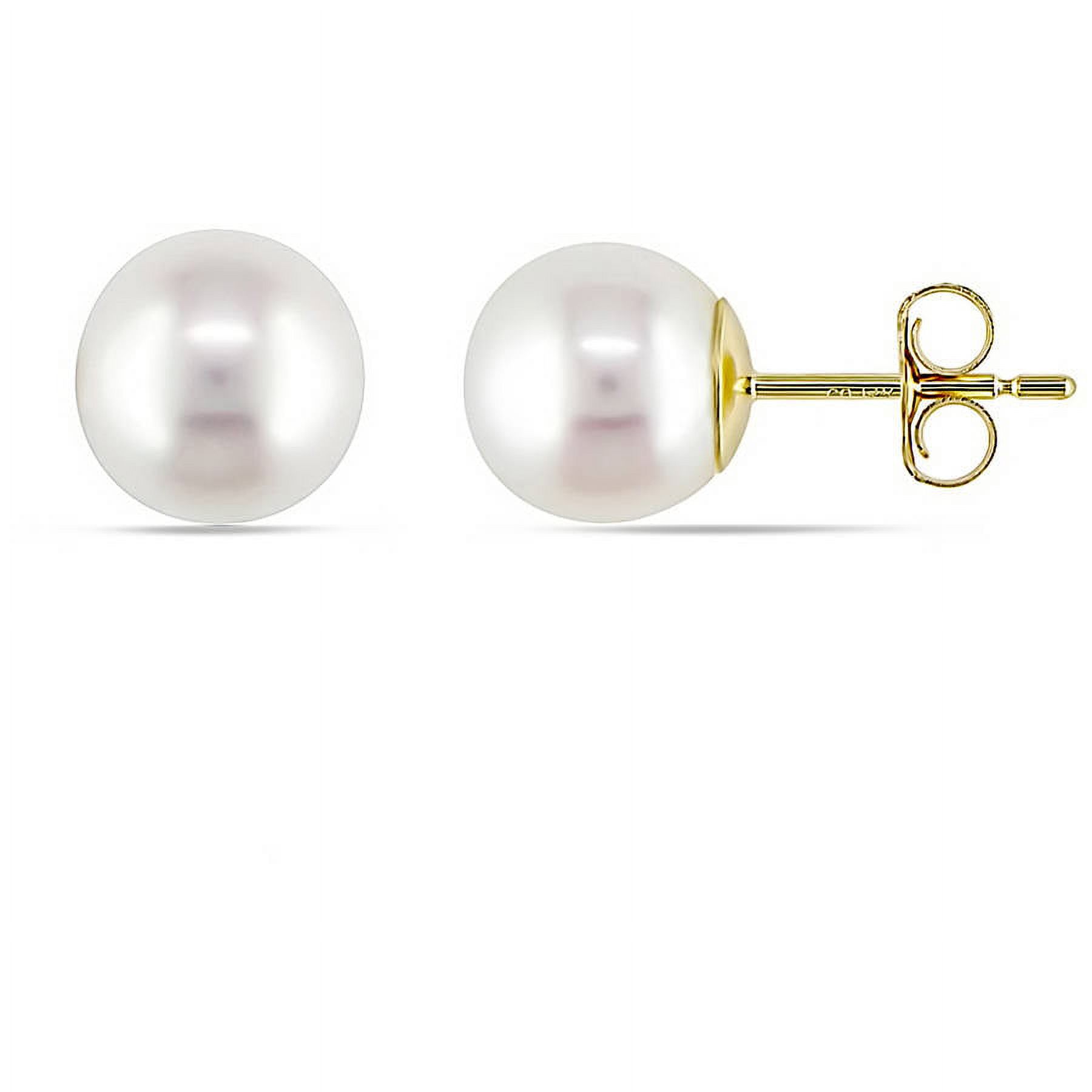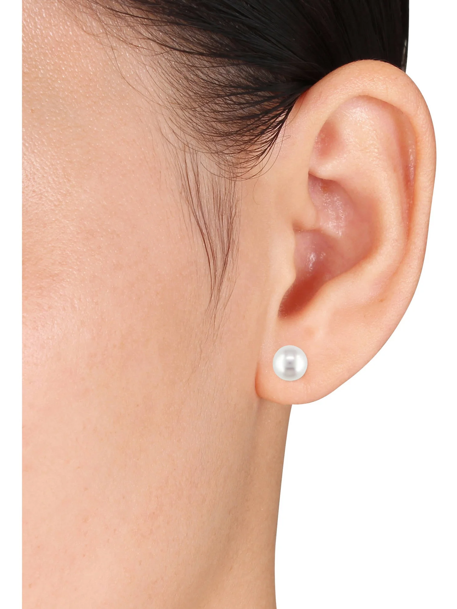 7-7.5mm White Round Cultured Freshwater Pearl 14kt Yellow Gold Stud Earrings