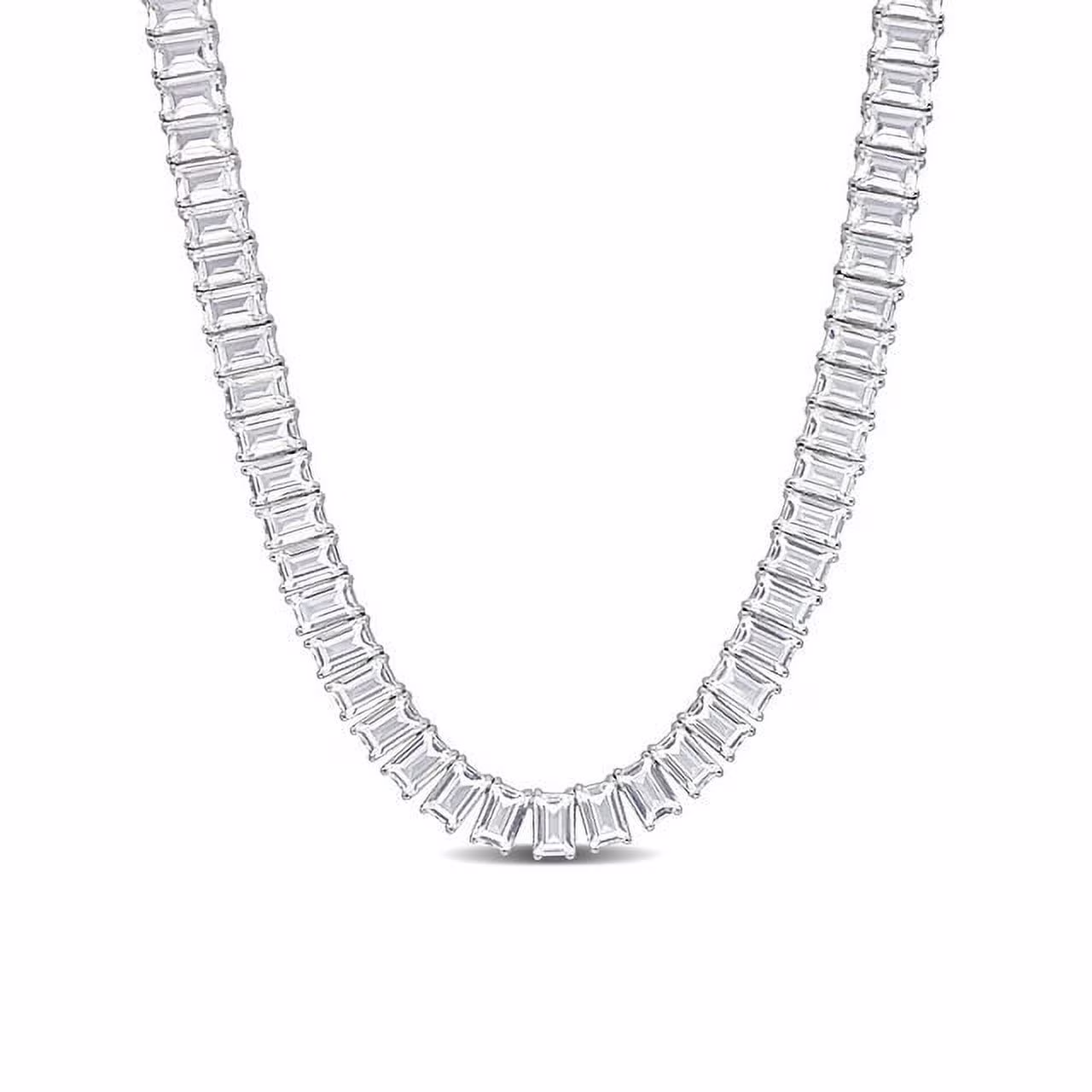 5.85Ct Baguette Cut Moissanite 14k White Gold Tennis Necklace Fine Jewelry for Women Gifts/Wedding