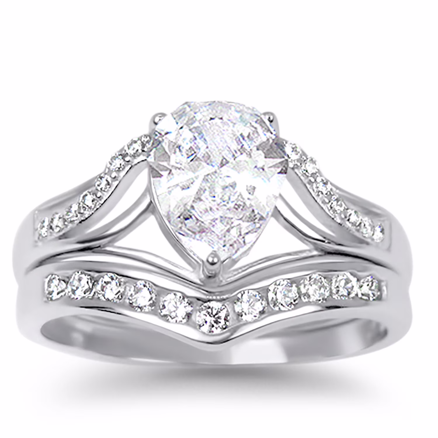 Vintage Simulated Diamond Silver Wedding Engagement Bridal Ring Set for Women Size 6