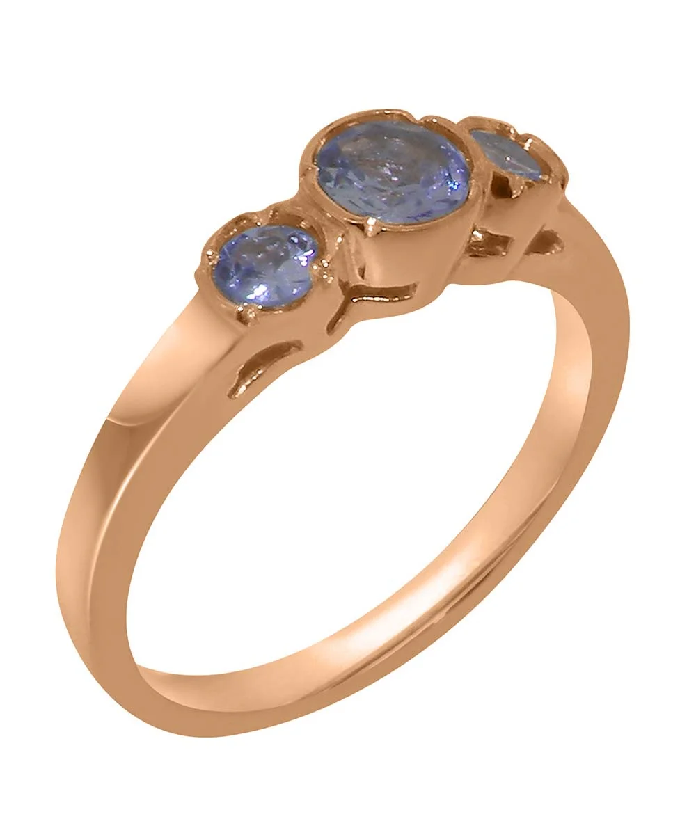 LBG British Made 18k Rose Gold Natural Tanzanite Womens Anniversary Ring - 33 size options - Size 10
