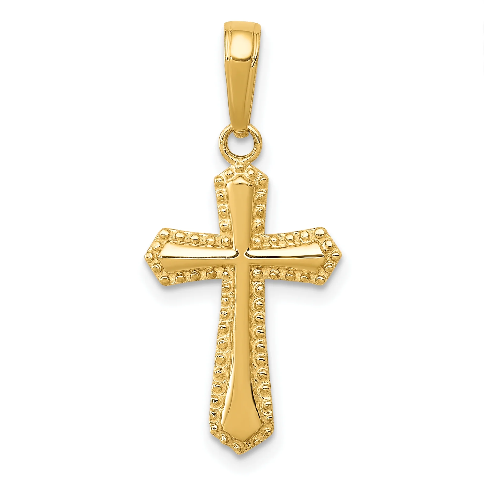 Carat in Karats 14K Yellow Gold Polished And Textured Cross Pendant Charm (22.85mm x 11.2mm)