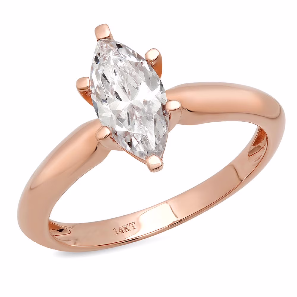 1ct marquise cut clear moissanite 14k rose gold anniversary engagement ring size 10