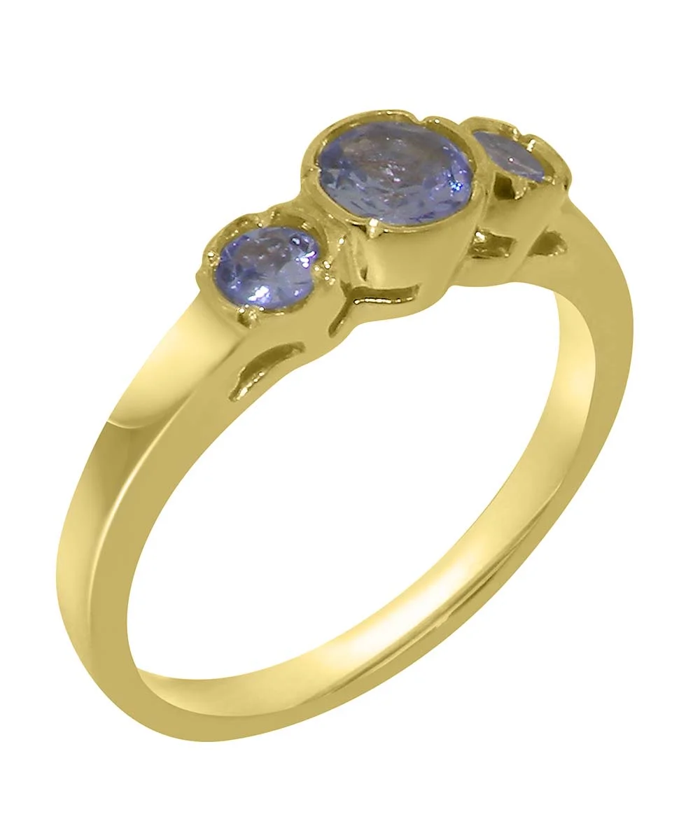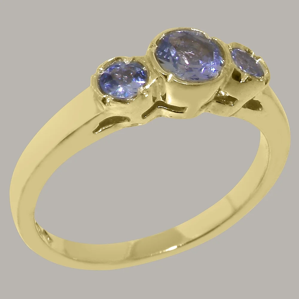 LBG British Made 18k Yellow Gold Natural Tanzanite Womens Anniversary Ring - 33 size options - Size 10