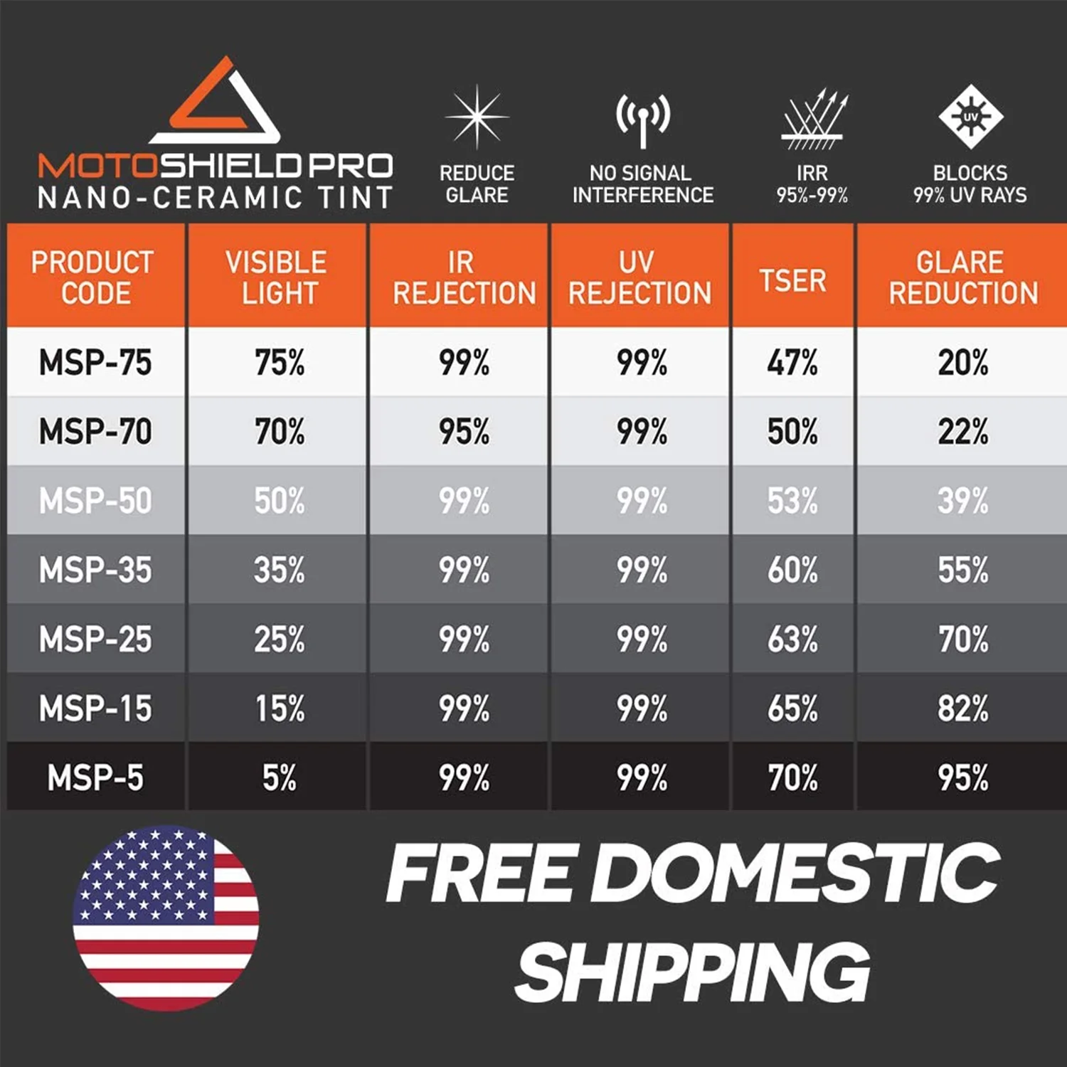 MotoShield Pro 15 Percent VLT Ceramic Window Tint, 20 Inch x 10 Foot Roll