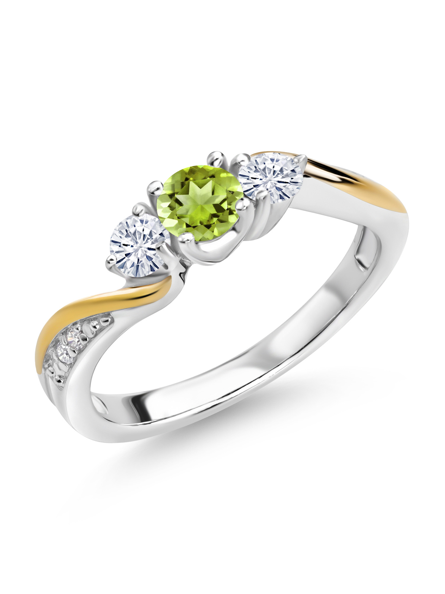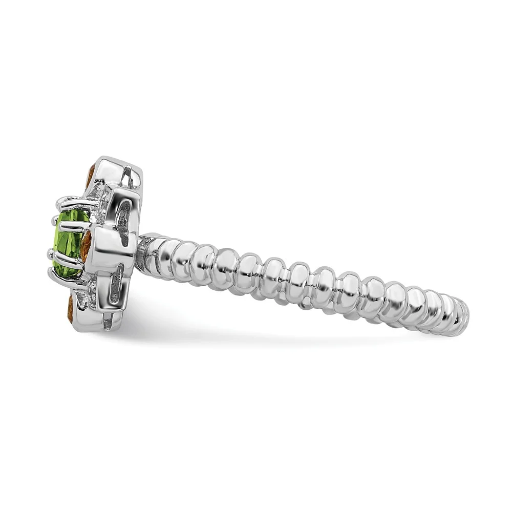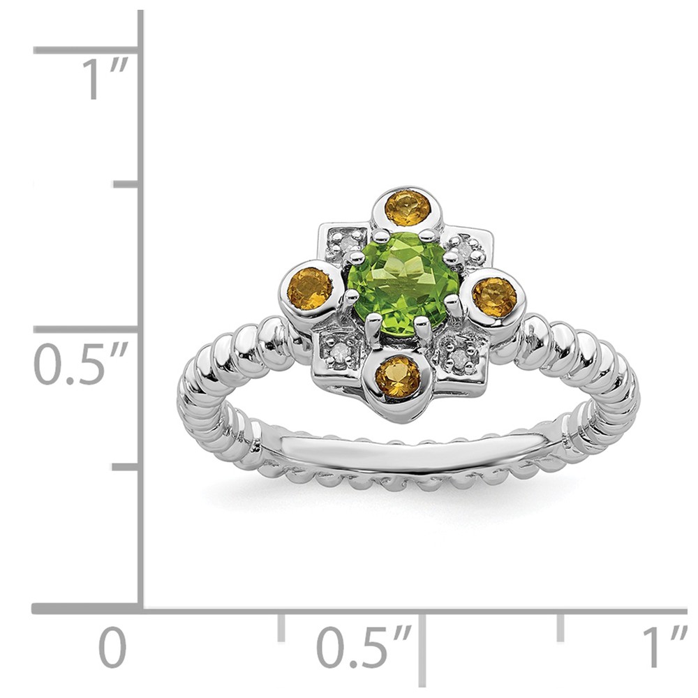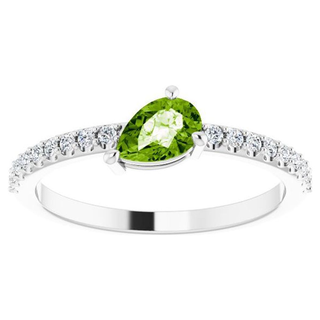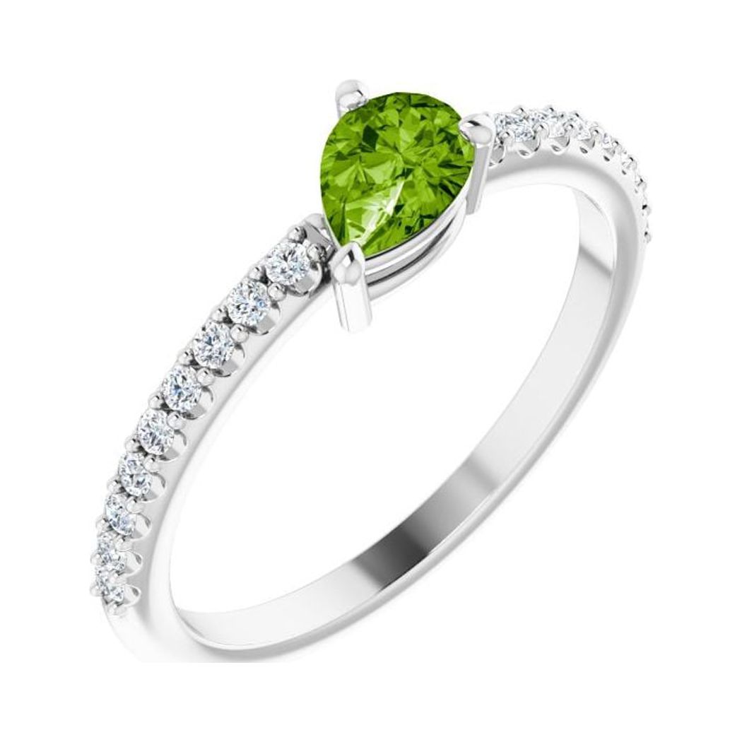 14k White Gold Peridot Polished Peridot and 0.17 Carat Diamond Stackable Ring Size 7 Jewelry Gifts for Women
