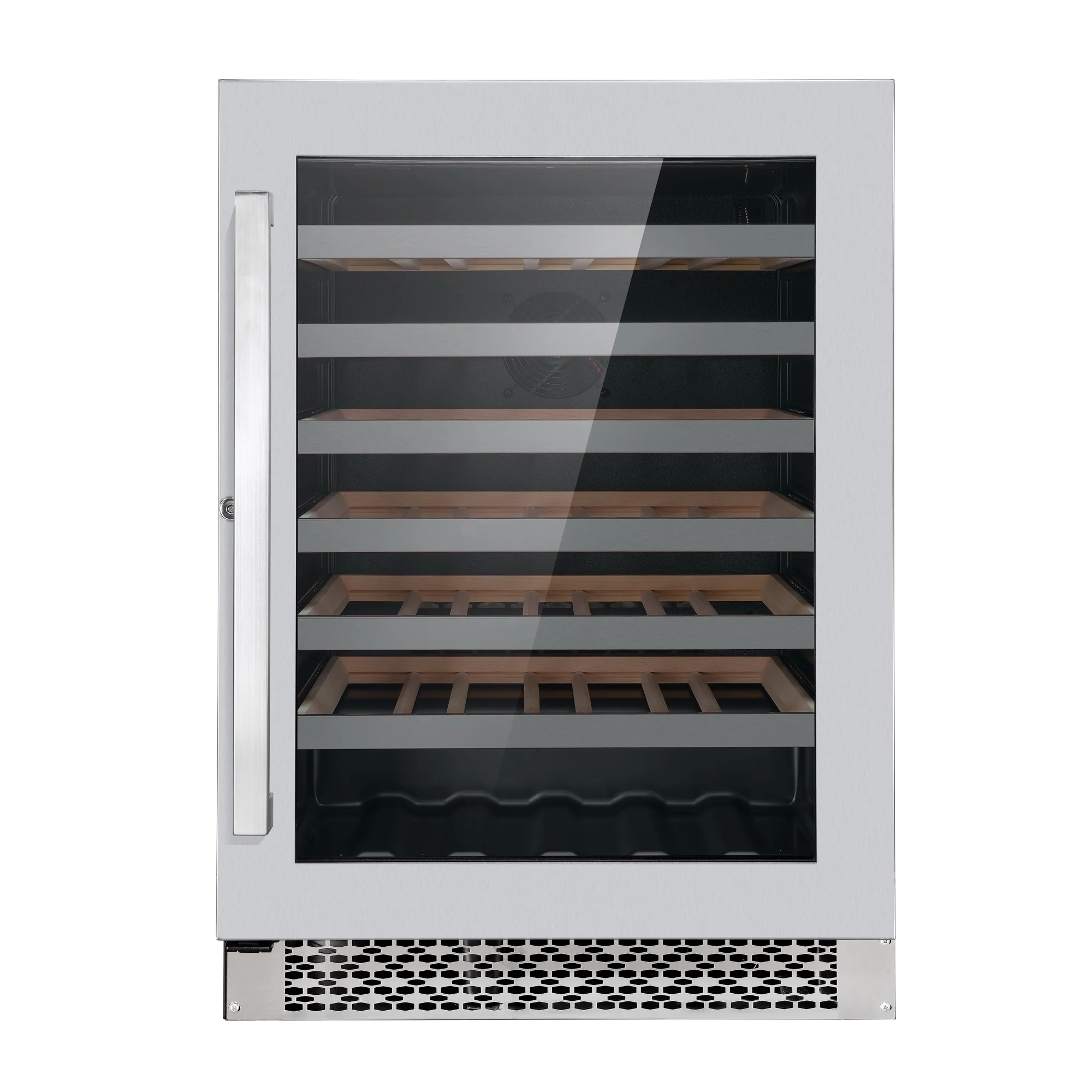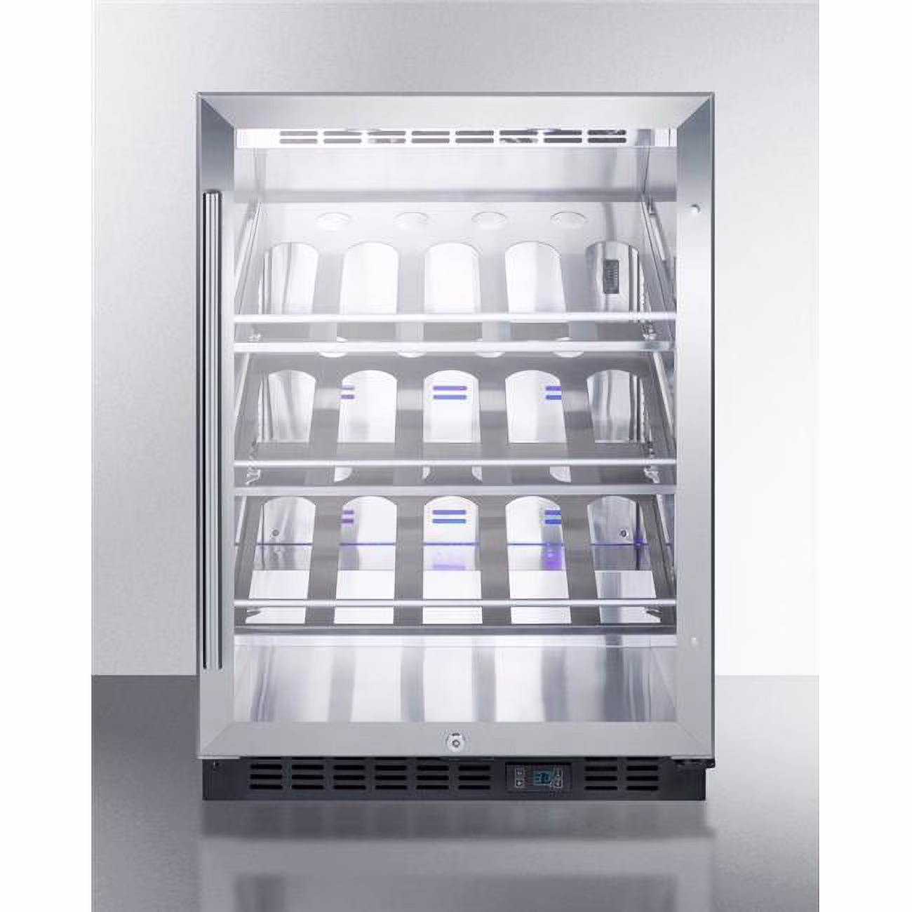 Commercial built-in undercounter wine cellar with champagne style shelving