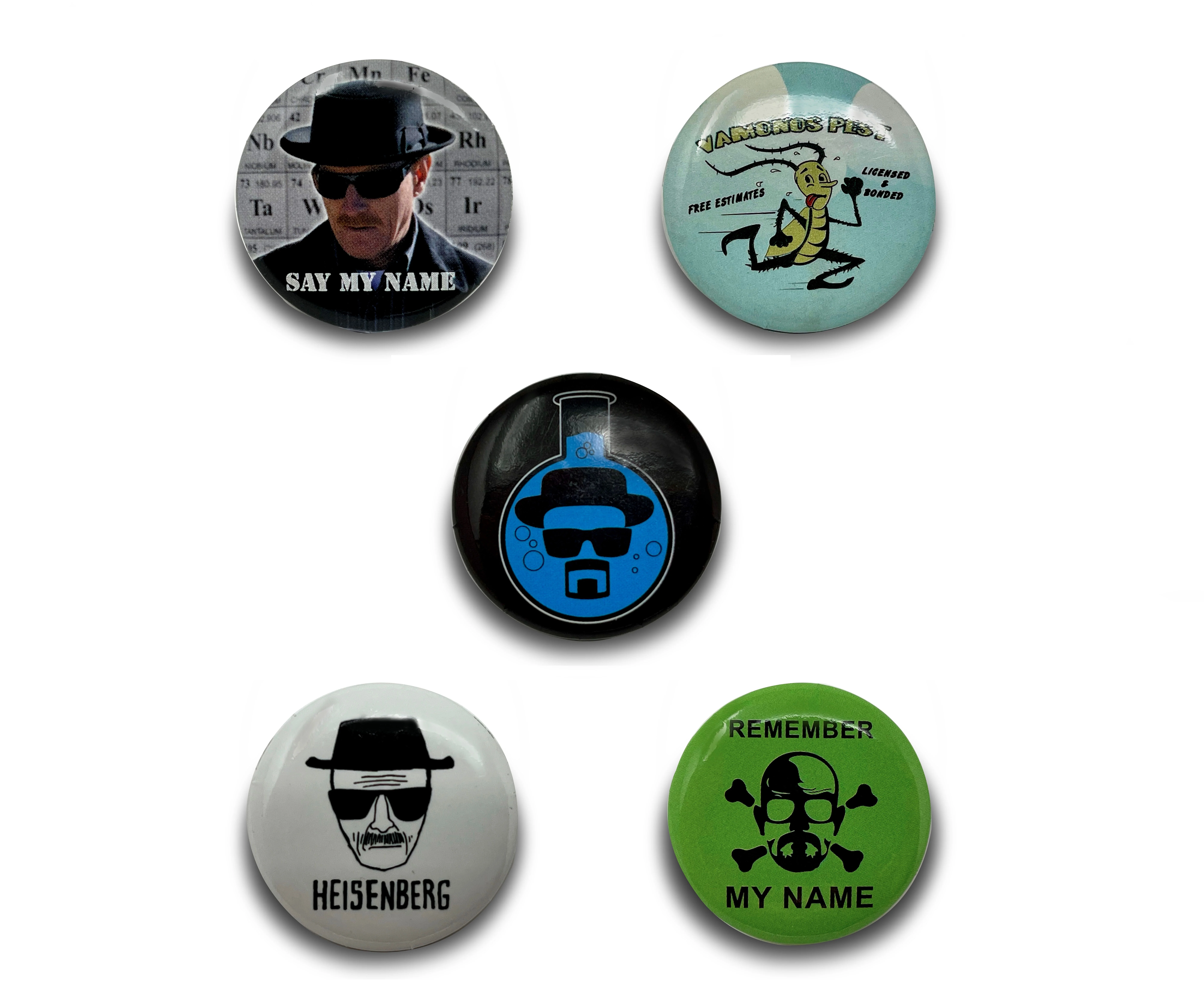 BREAKING BAD COMBO BUTTON - Say & Remember My Name, Vamonos Pest & Heisenberg Officially Licensed 5-Buttons - 1.25" Ea