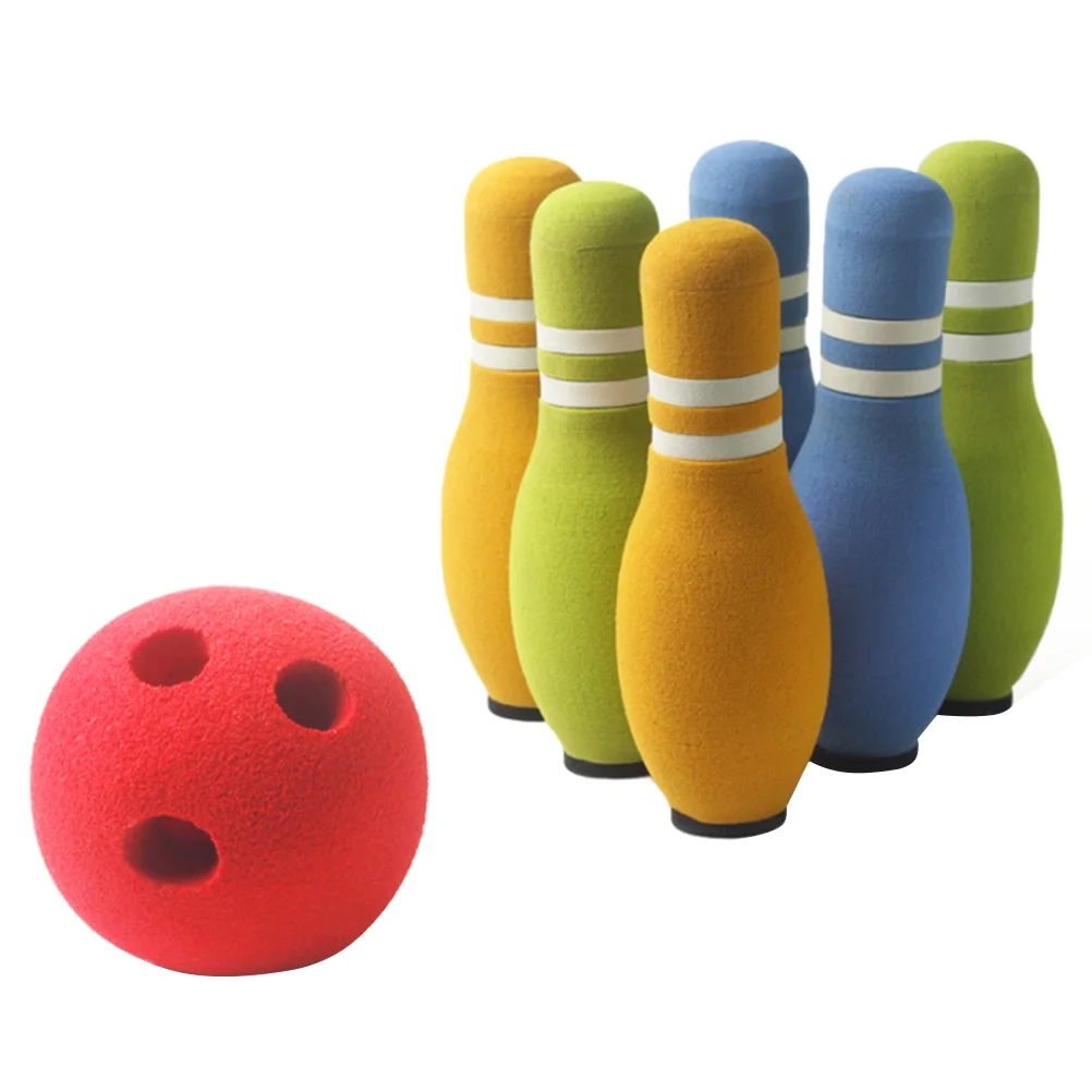 Naturegr 12Pcs/Set Kids Solid Color Pins Balls Bowling Game Indoor Sport Development Toy