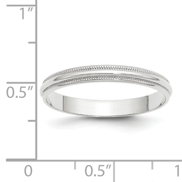 Solid 18K White Gold 3mm Light Weight Milgrain Half Round Men's/Women's Wedding Band Ring Size 14