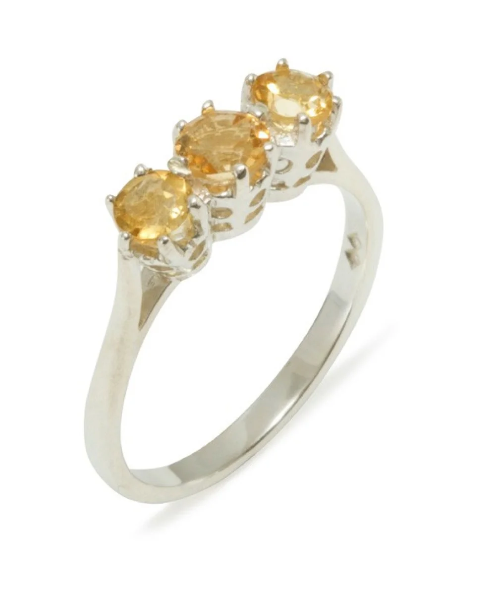 LBG 18k White Gold Natural Citrine Womens Anniversary Ring - Size 10