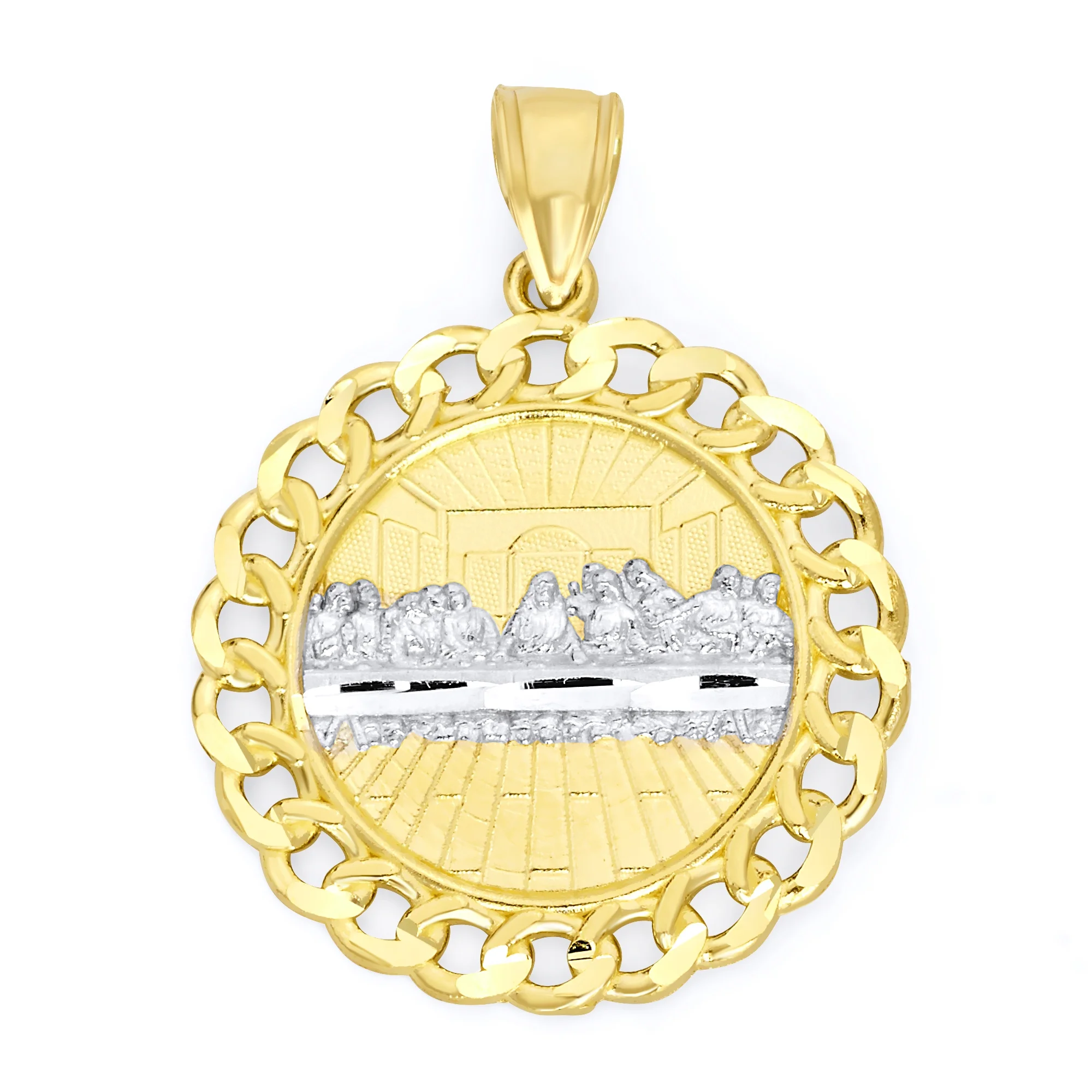 10k Real Solid Gold Last Supper Medallion with Cuban Link Detail, Catholic Gifts for Him