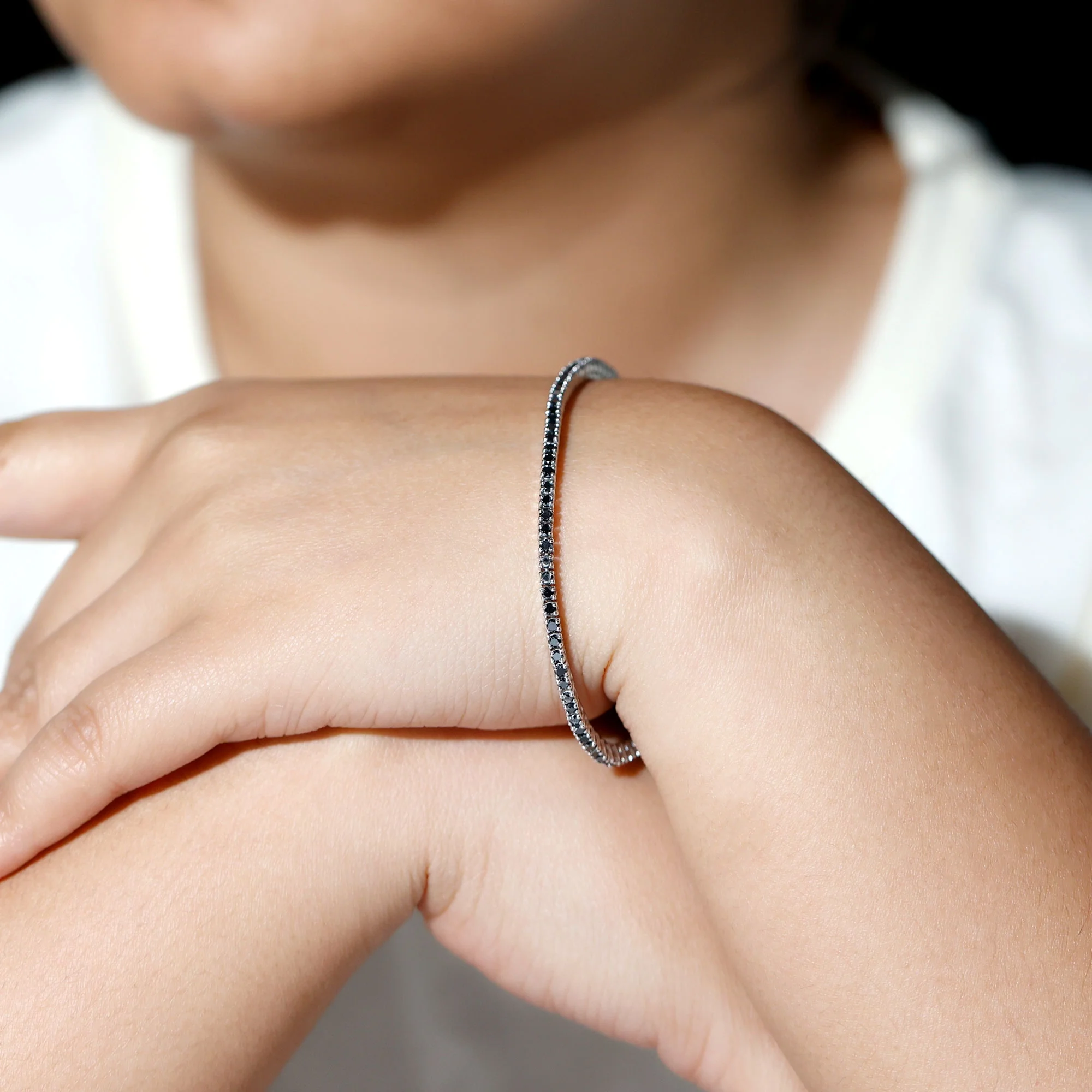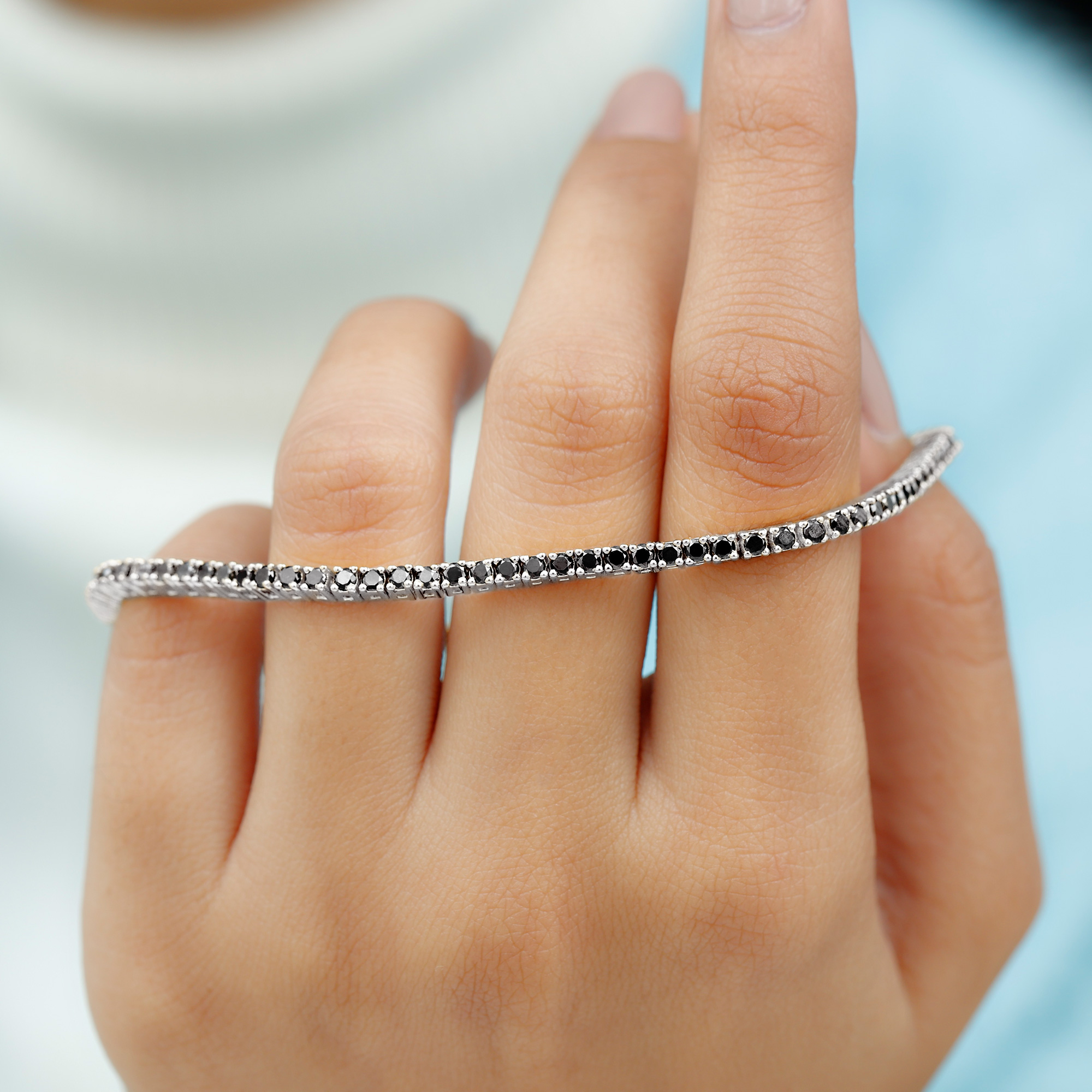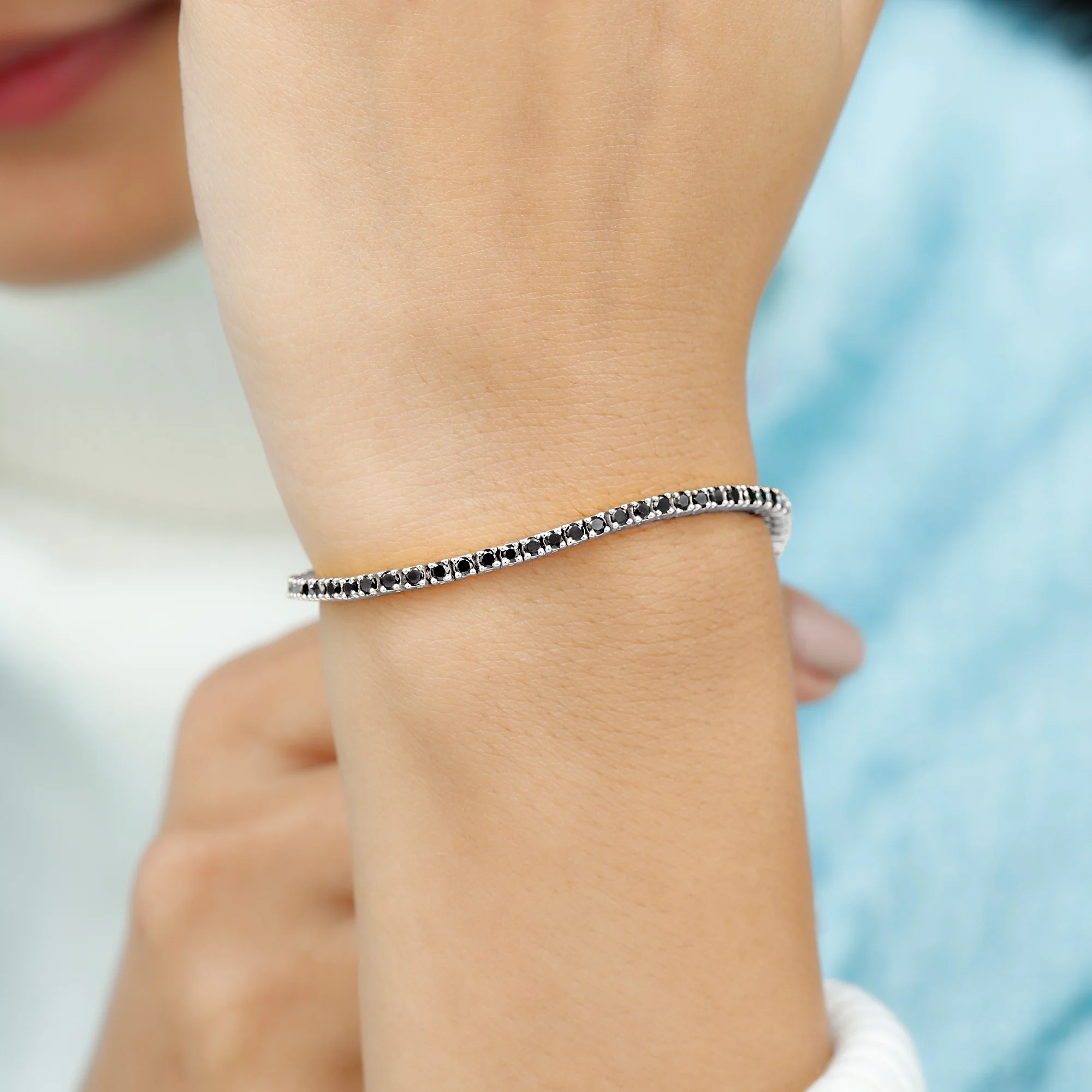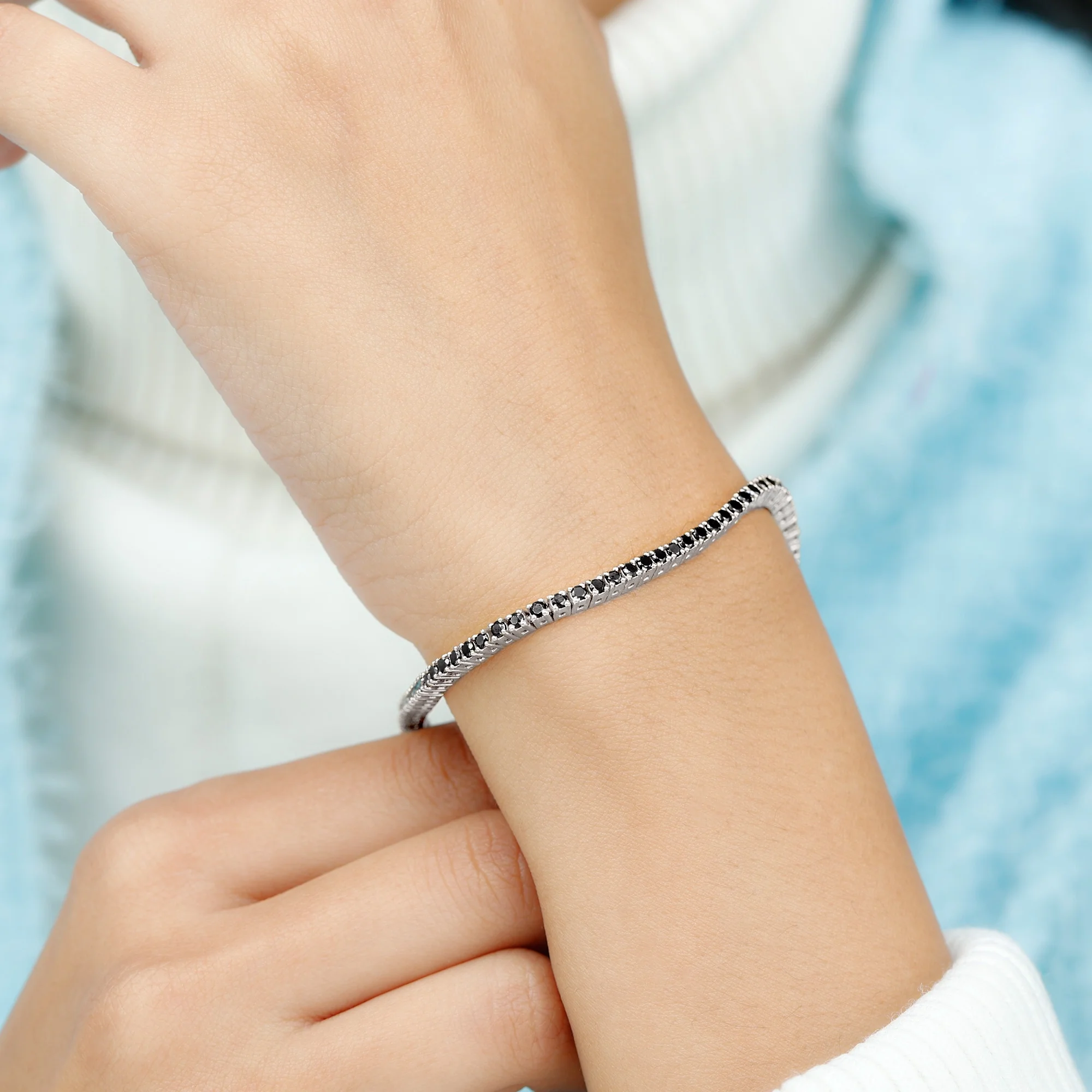 Lab Created Black Diamond Tennis Bracelet for Women - AAAA Quality, 925 Sterling Silver, 7.0 inches