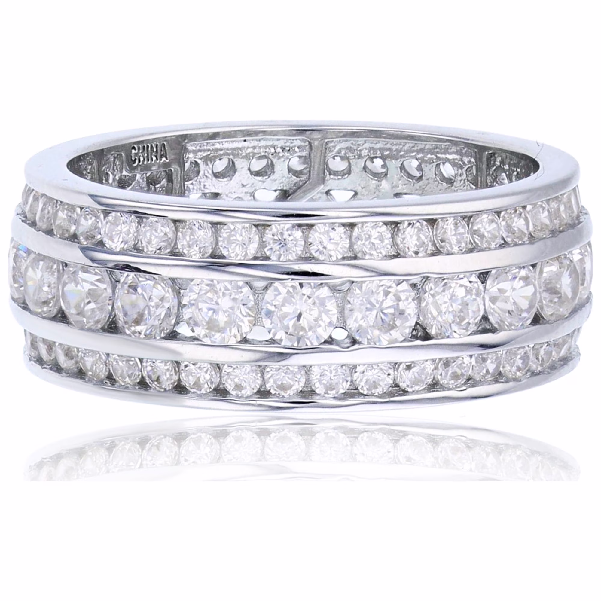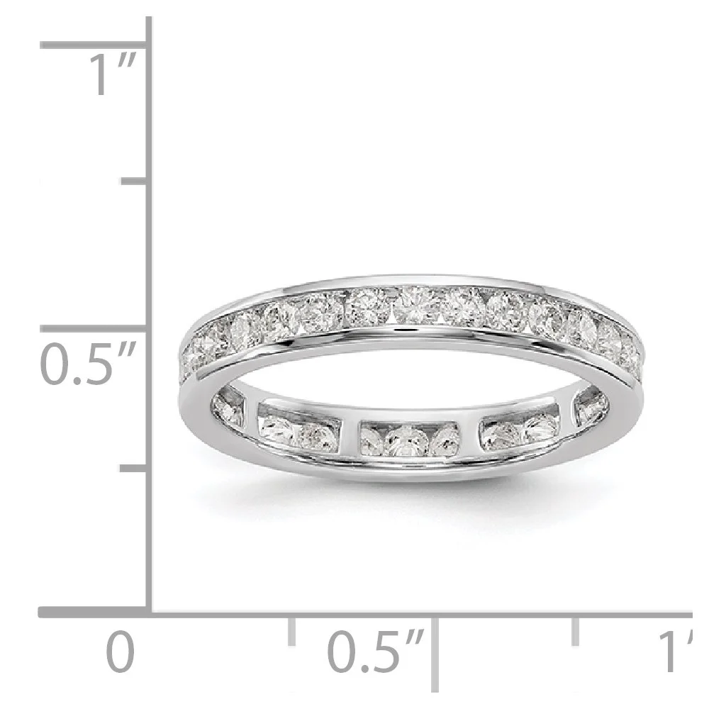 Sterling Silver Rhodium 3-Row Cubic Zirconia Channel Set Lines Eternity Band