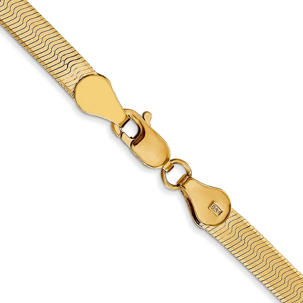 14K Yellow Gold Herringbone Chain Necklace 24 inch 4 mm Silky with Lobster Clasp