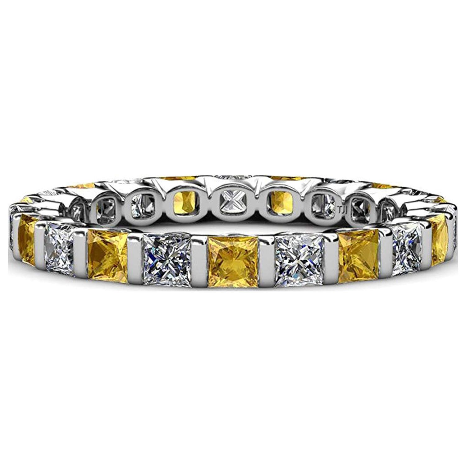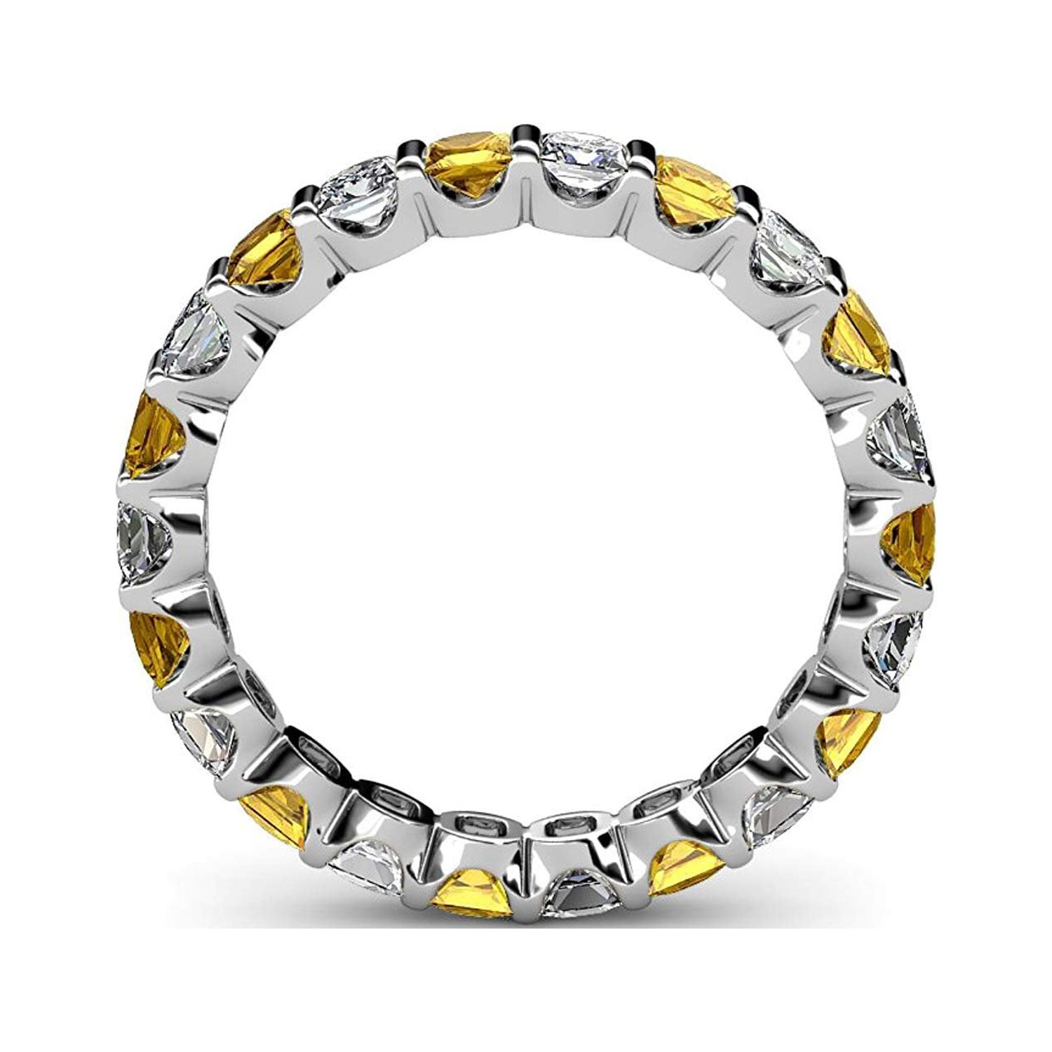 Citrine & Diamond Common Channel Set 3 mm Eternity Band 2.52 ct tw to 3.15 ct tw in 14K White Gold.size 4.0
