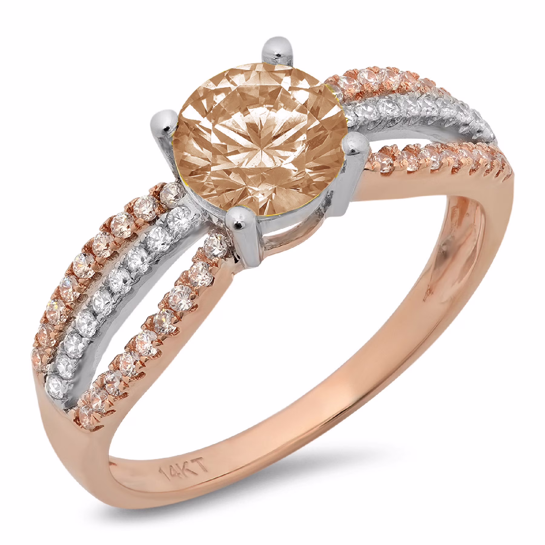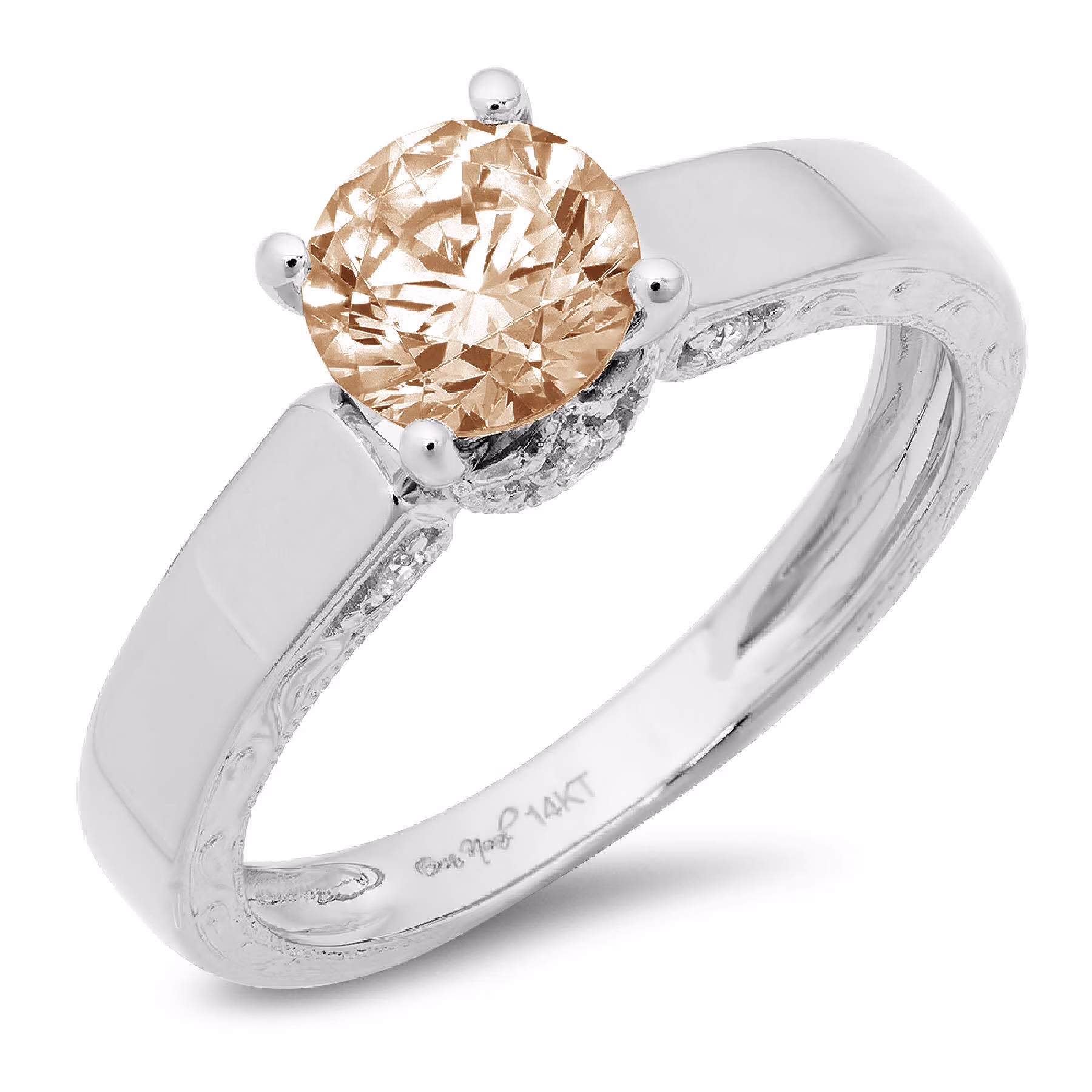 1.06ct round cut champagne simulated diamond 18k white gold anniversary engagement ring size 3.75