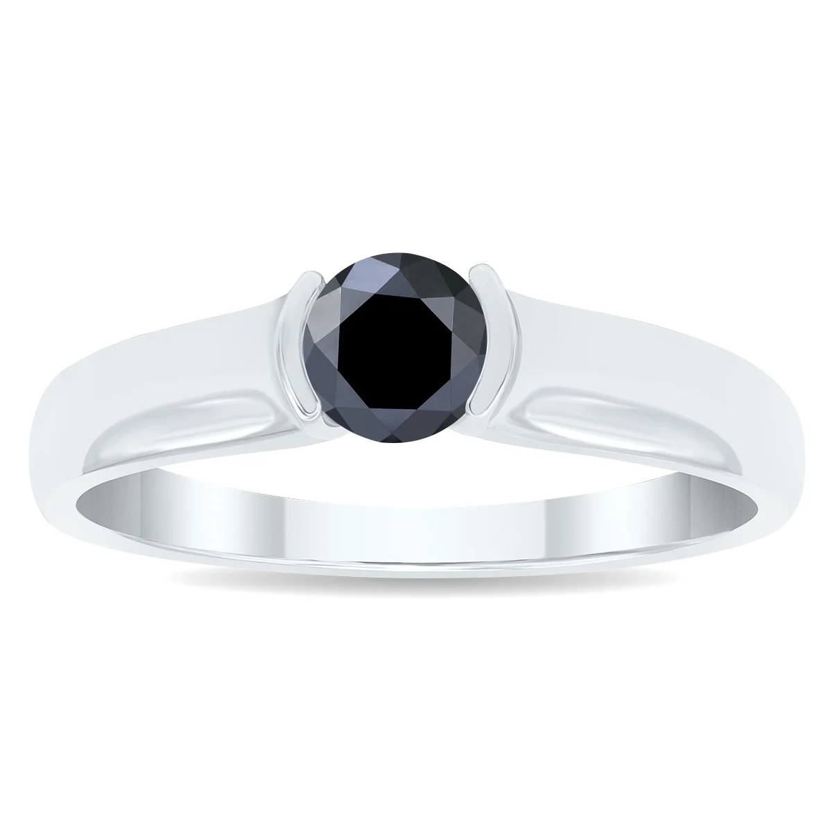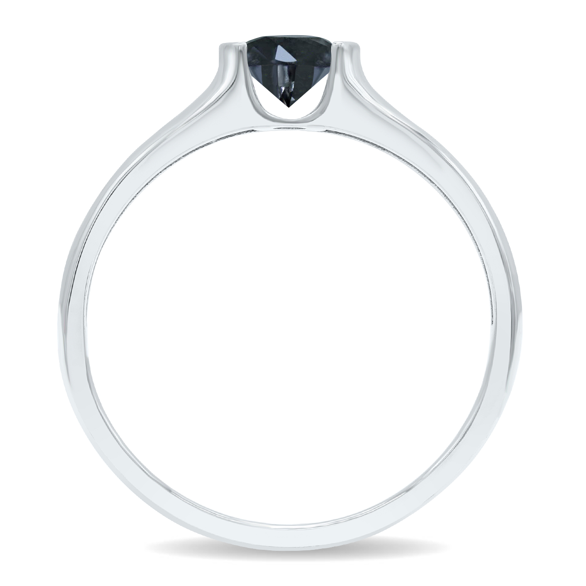 SZUL Women's 3/4 Carat Half Bezel Black Diamond Solitaire Ring in 10K White Gold