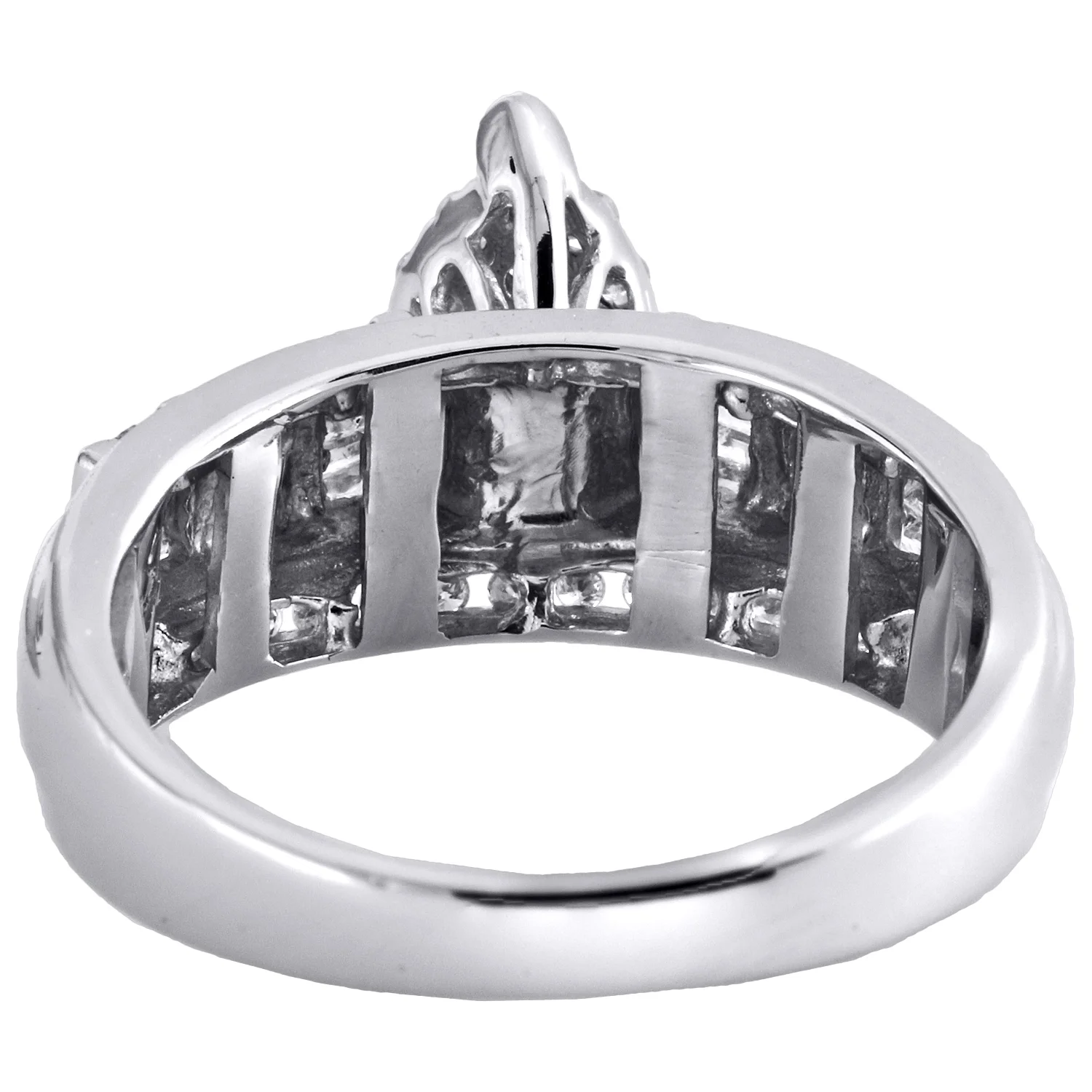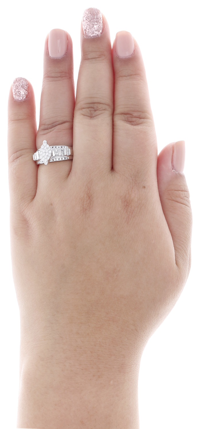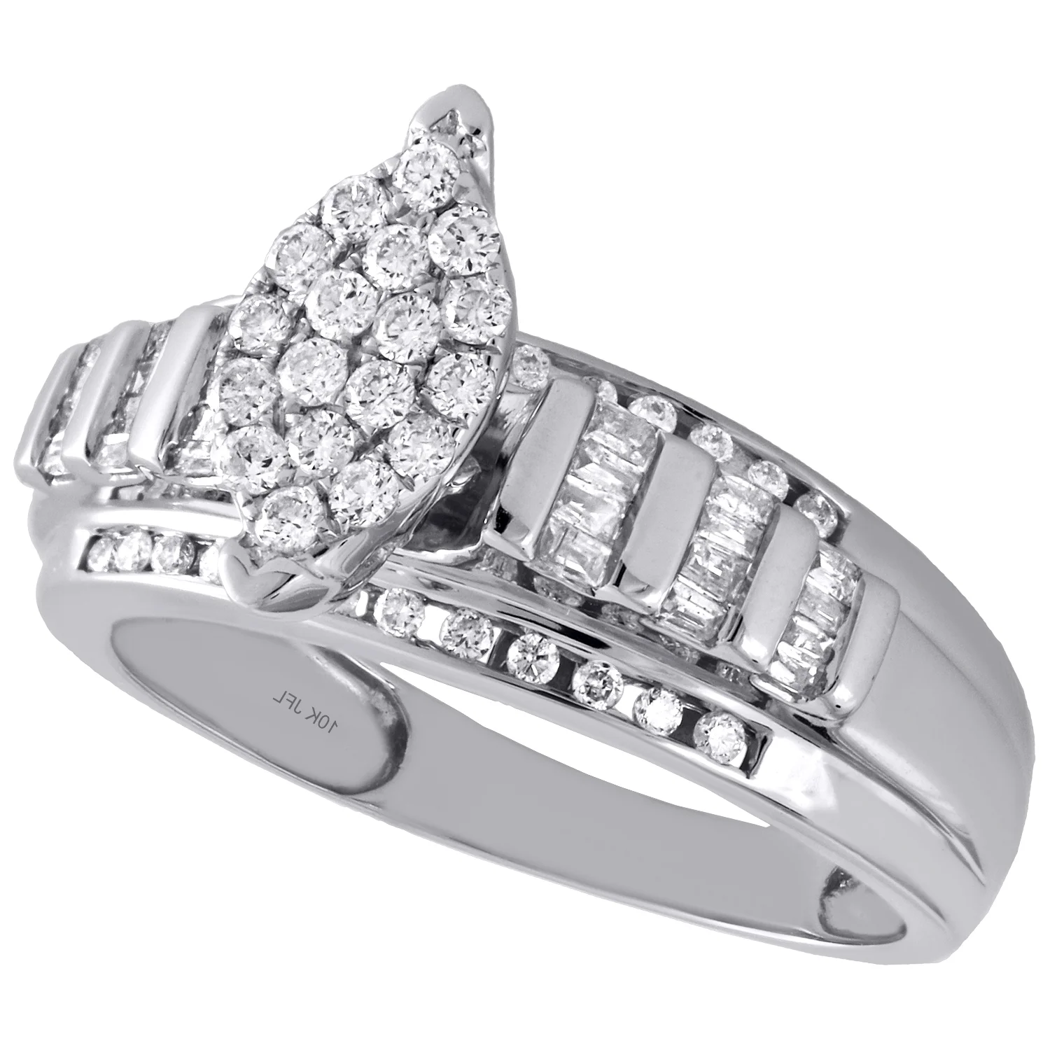 10K White Gold Round Diamond Marquise Cluster Ladies Engagement Ring 0.50 Ct.