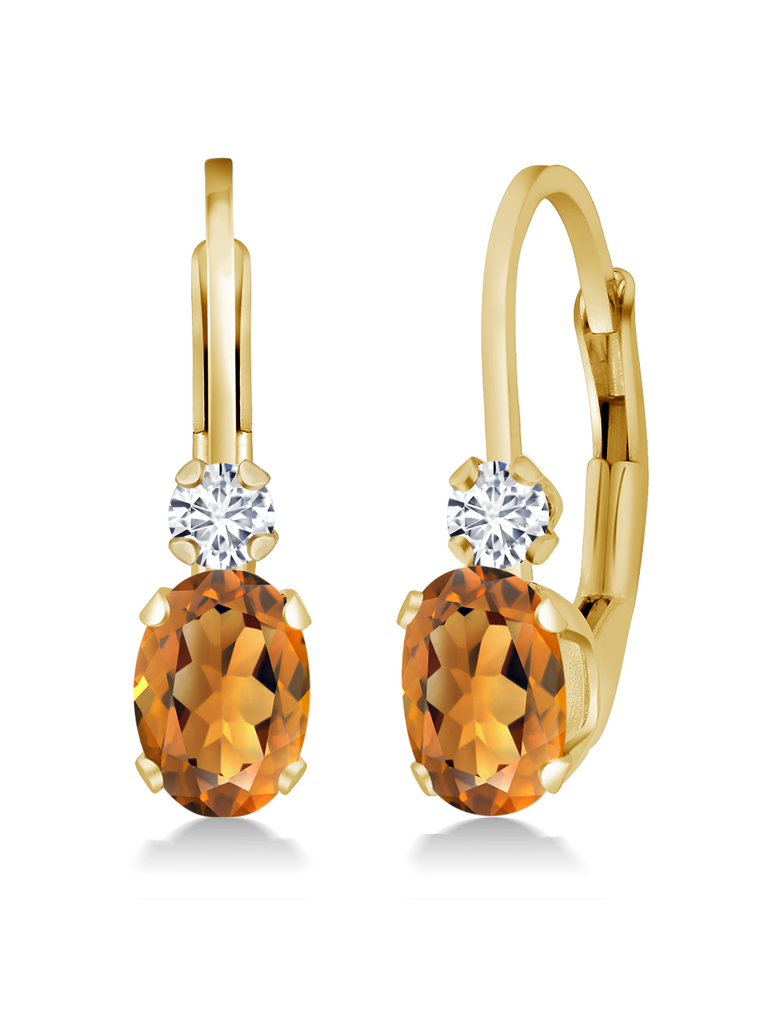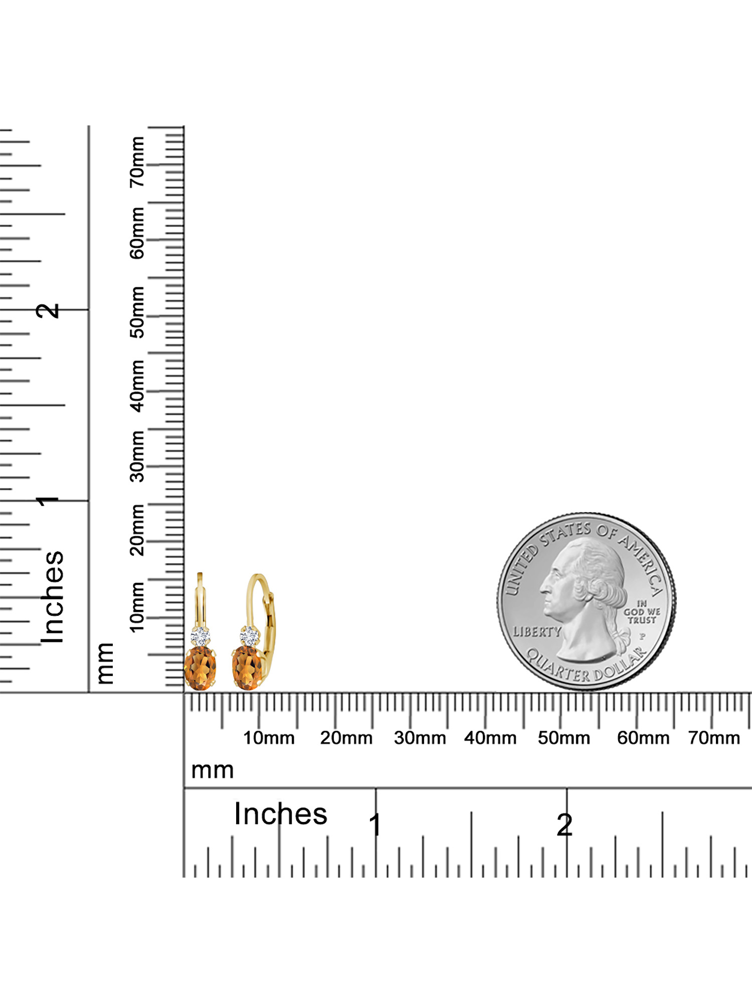 Galaxy Gold 14K Yellow Gold Leverback Earrings with Checkerboard Cut Round White Topaz