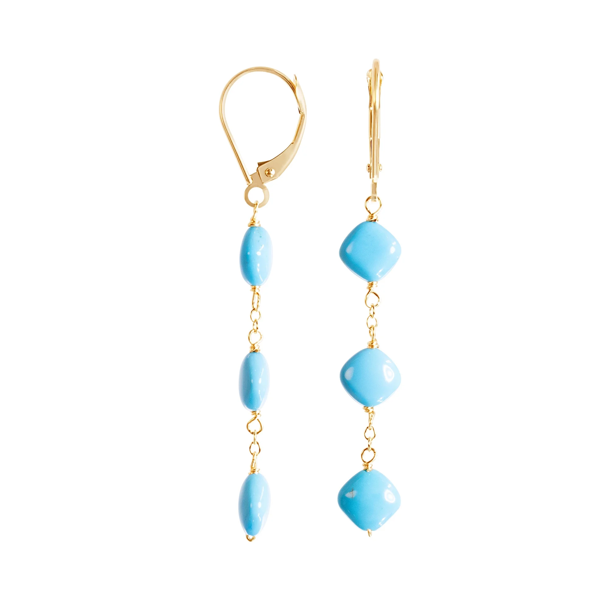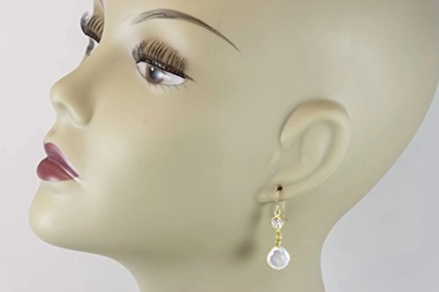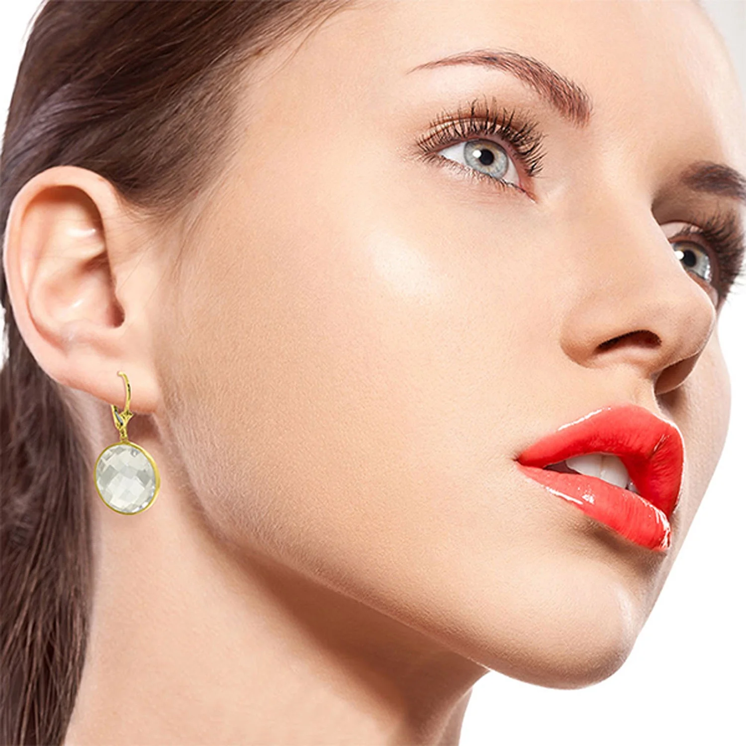Galaxy Gold 14k Solid Gold Leverback Earrings with Checkerboard Cut Round White Topaz