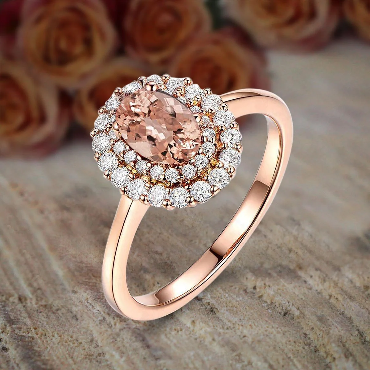 Limited Time Sale Double Halo 1.50 carat Morganite and Diamond Engagement Ring in 10k Rose Gold