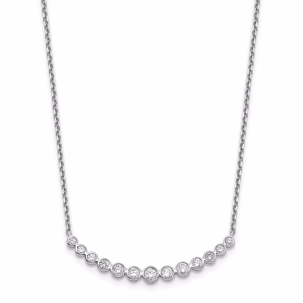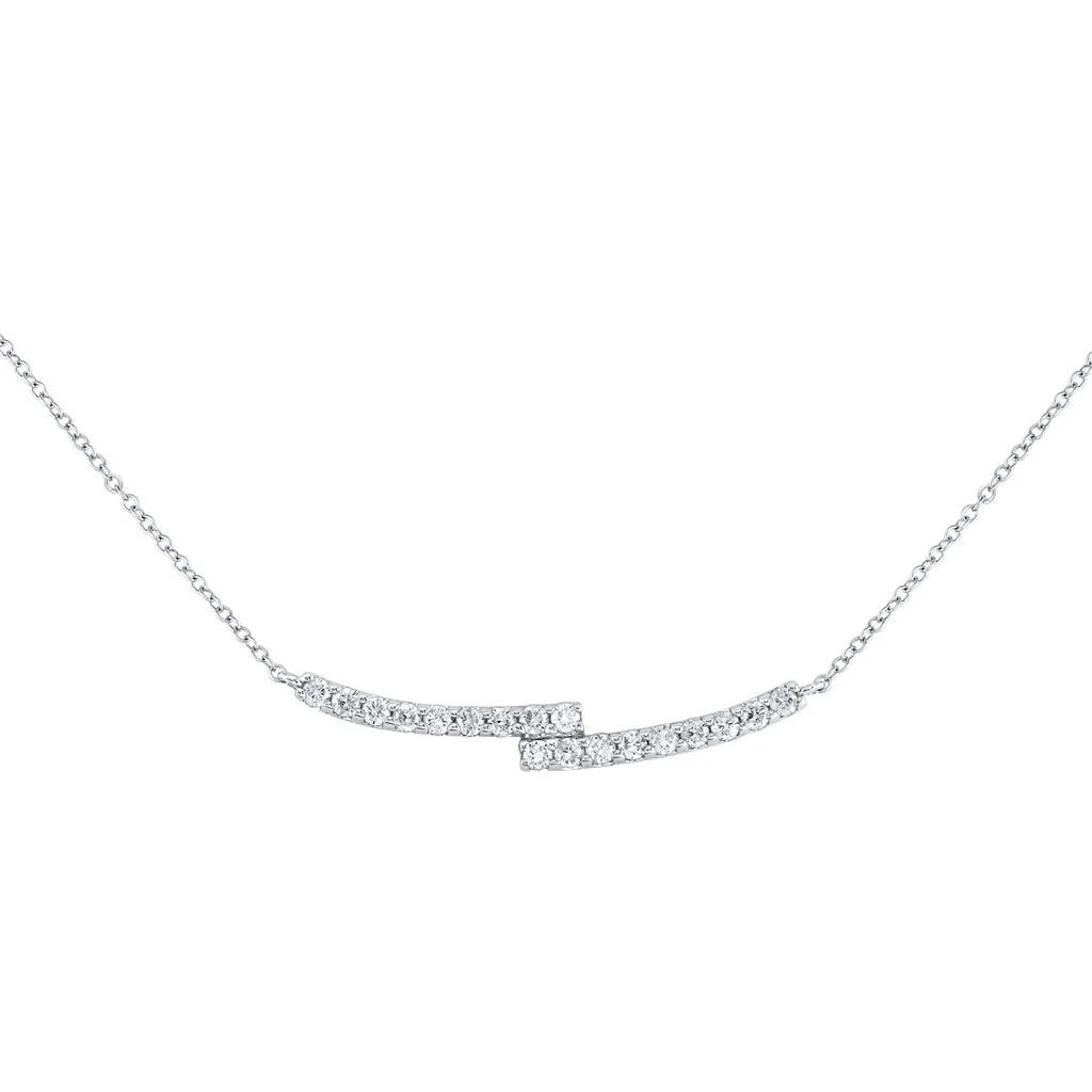 Real 14kt White Gold Diamond Curved Bar Necklace; 18 inch; Lobster Clasp; for Adults and Teens