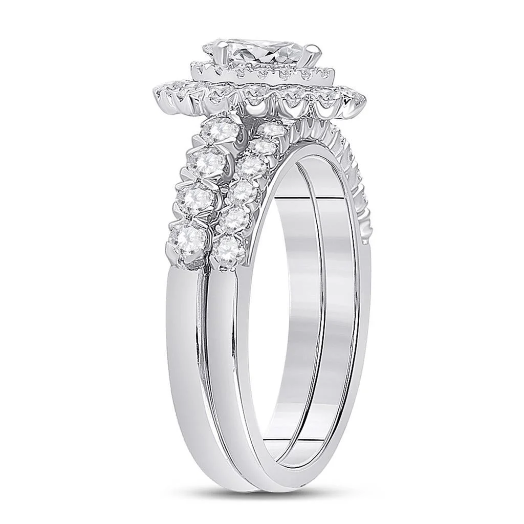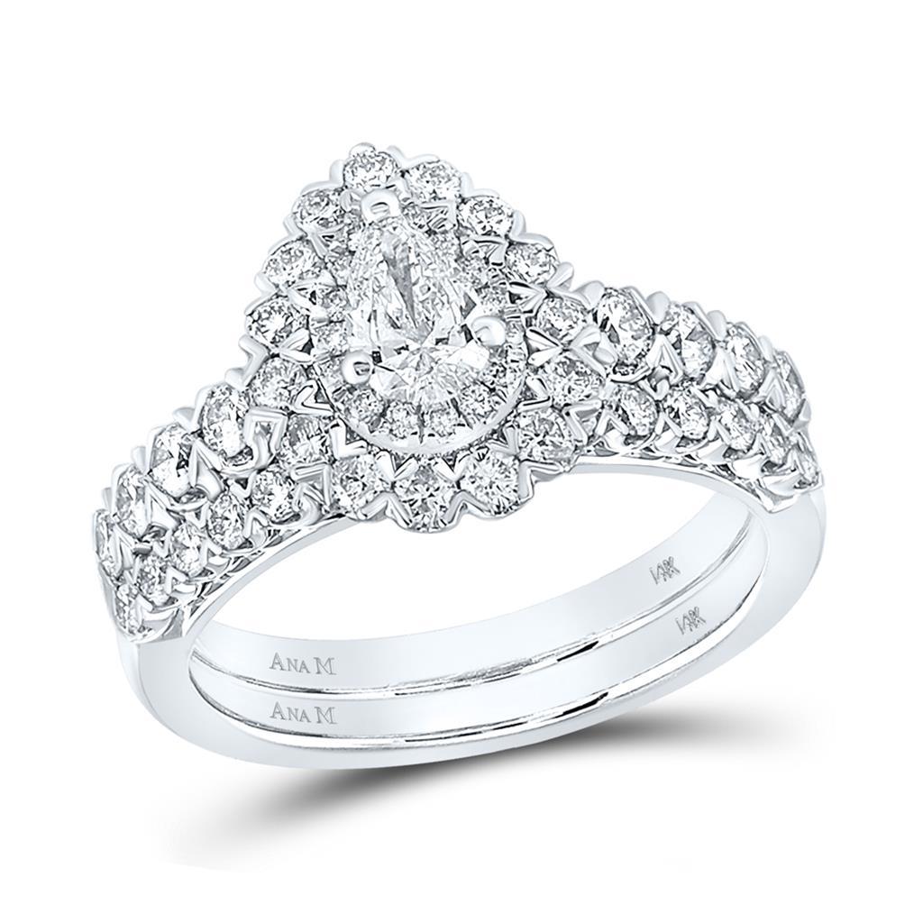 14k White Gold Pear Diamond Solitaire Bridal Wedding Ring Set 1-1/2 Cttw (Certified)