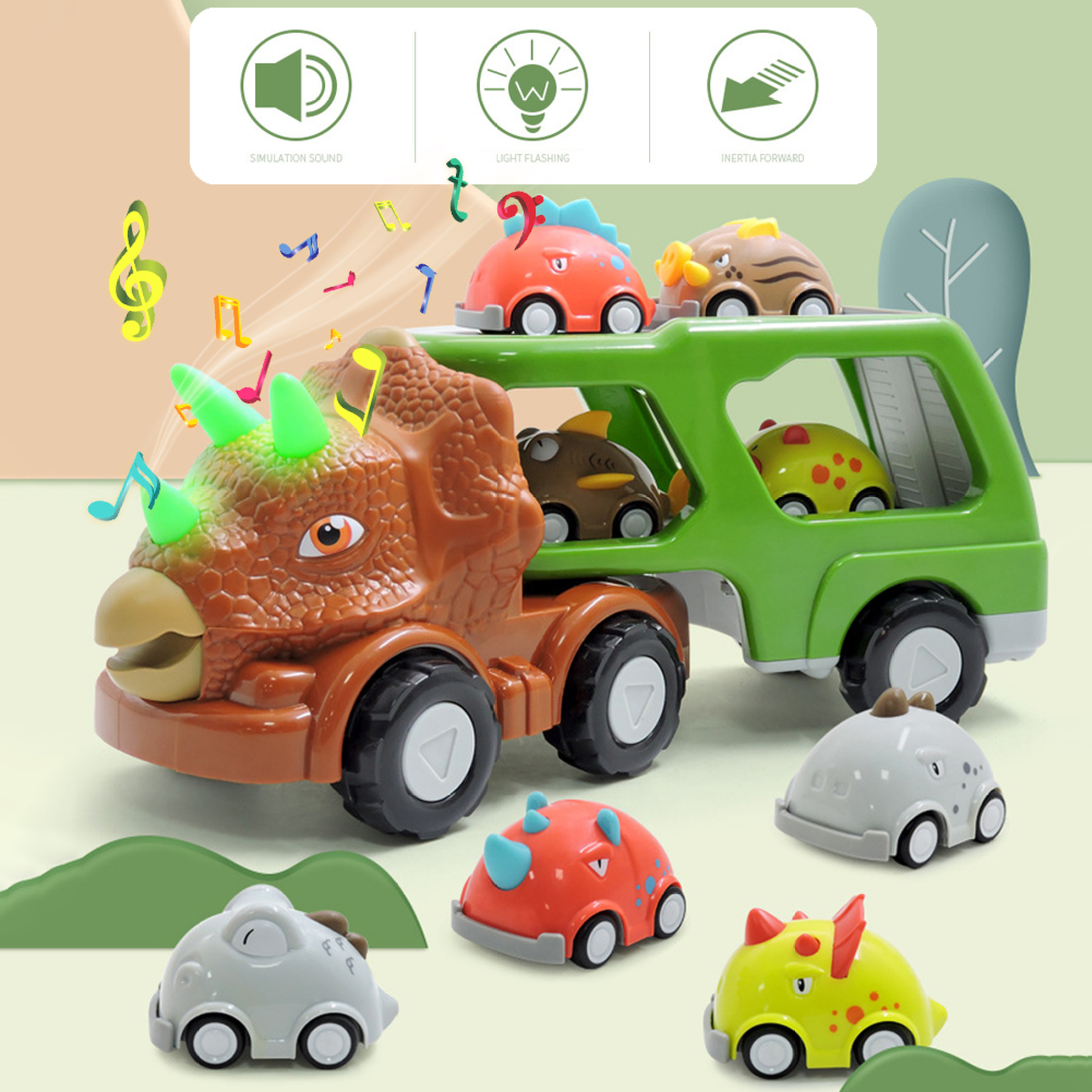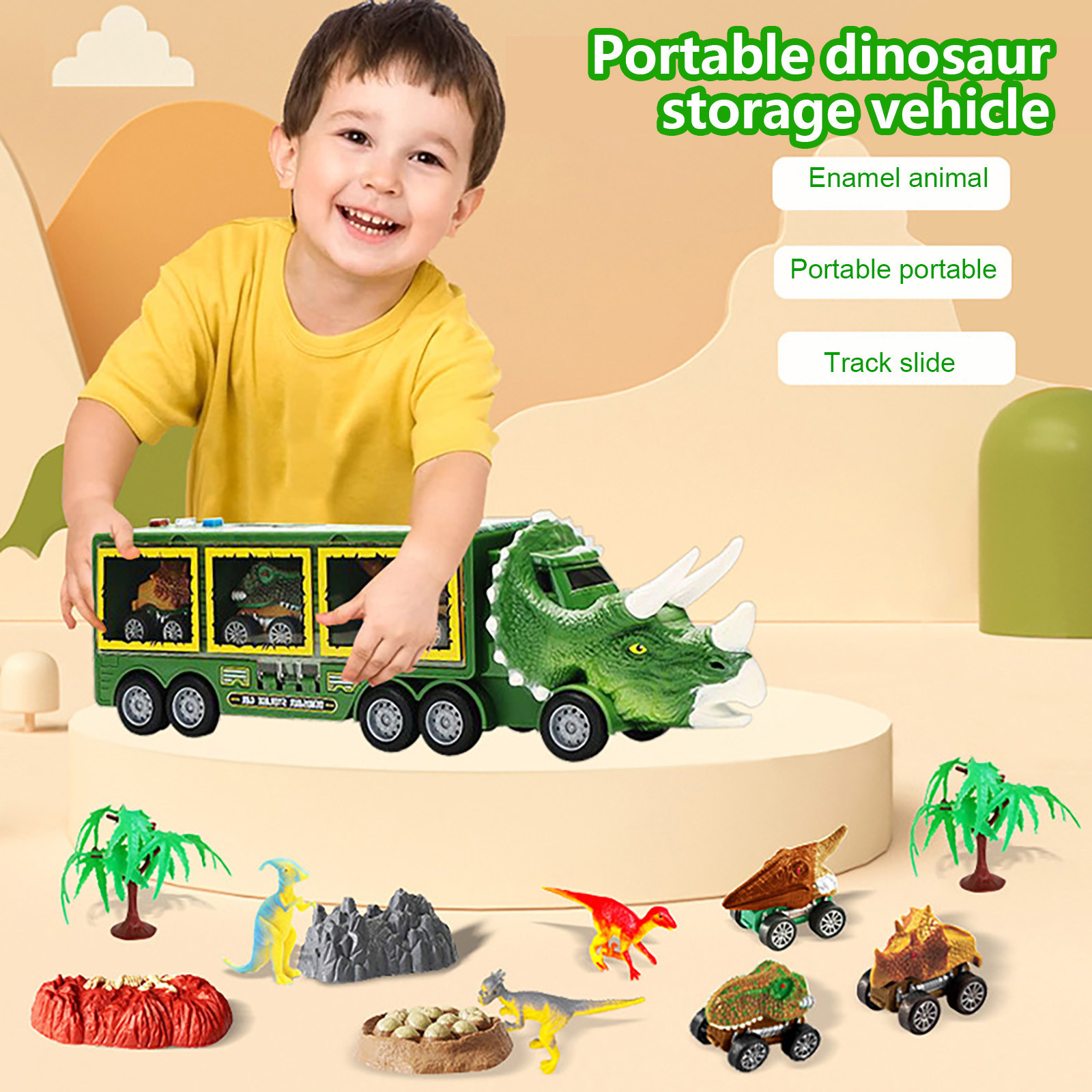 Dinosaur Transport Truck Carrier Toy Car With Dinosaurs Wild Life Car Helicopter Portable Handle Best Dinosaur Toy