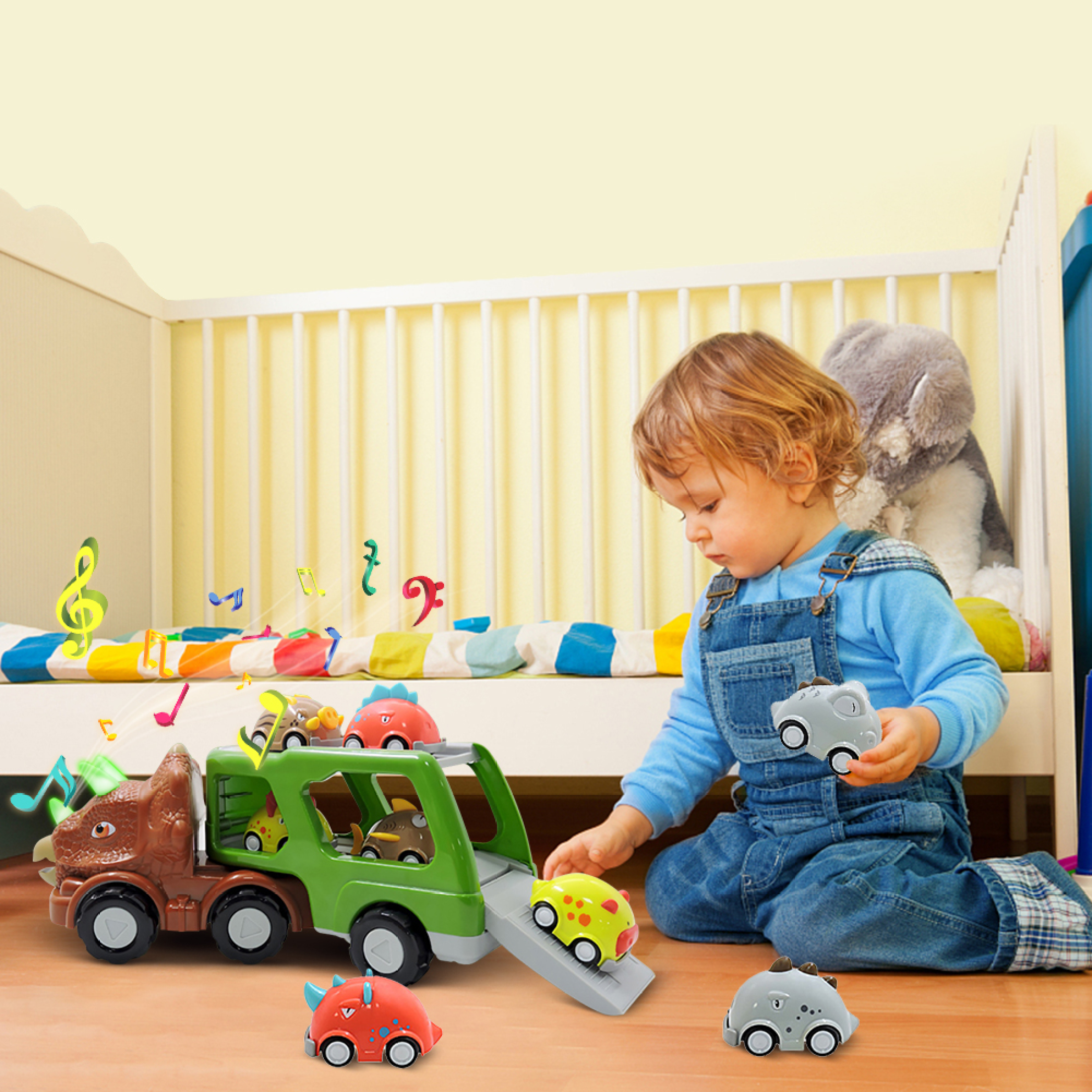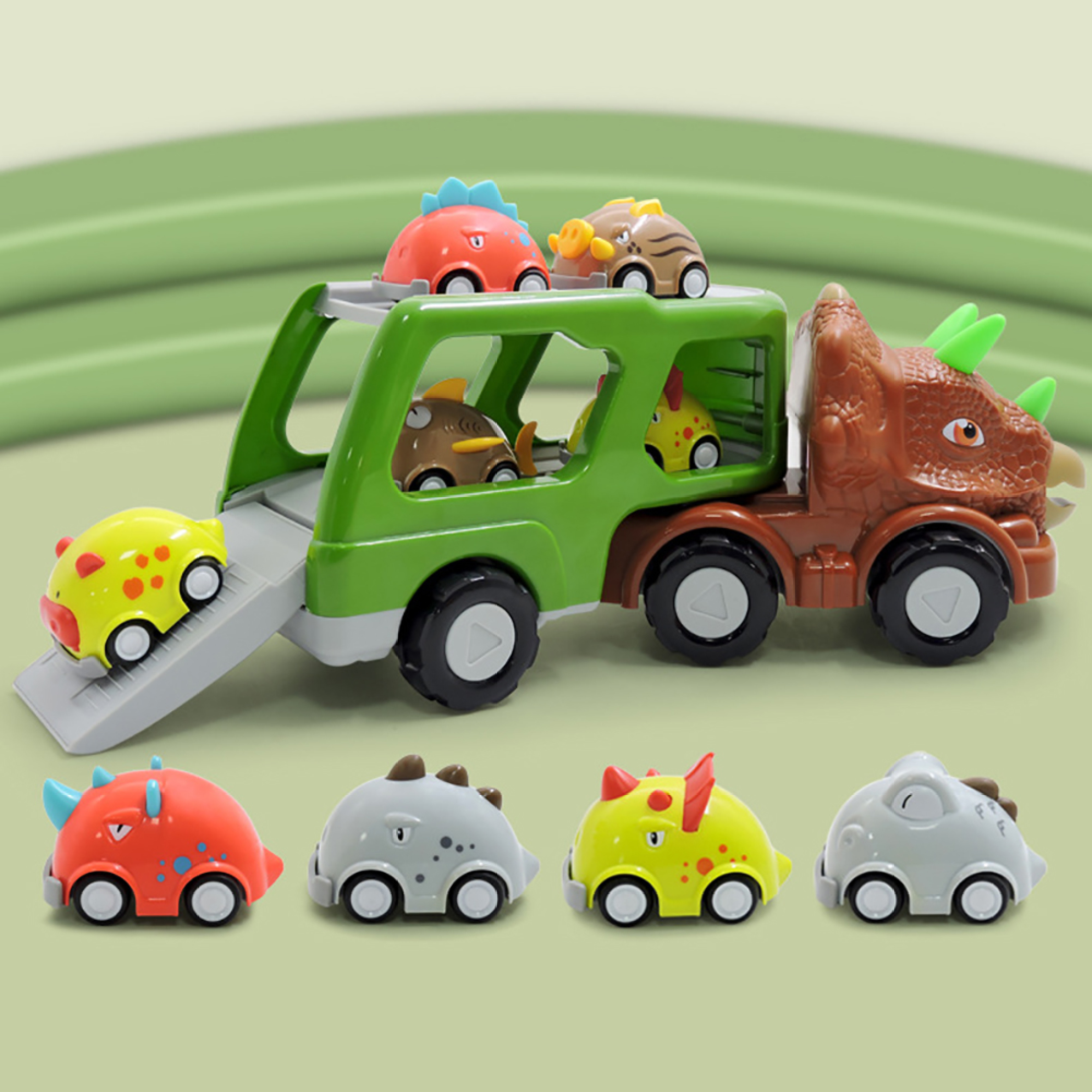 EUBUY Double-decker Dinosaur Car Toy Transport Carrier Truck with 8 Small Pull Back Dino Car Friction Power Vehicle Christmas Birthday Gift for Kids Boys Girls
