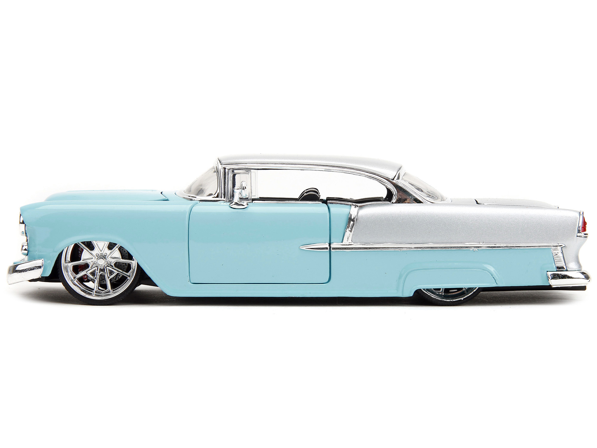 Diecast 1955 Chevrolet Bel Air Light Blue and Silver Metallic "Bad Guys" "Bigtime Muscle" Series 1/24 Diecast Model Car by Jada