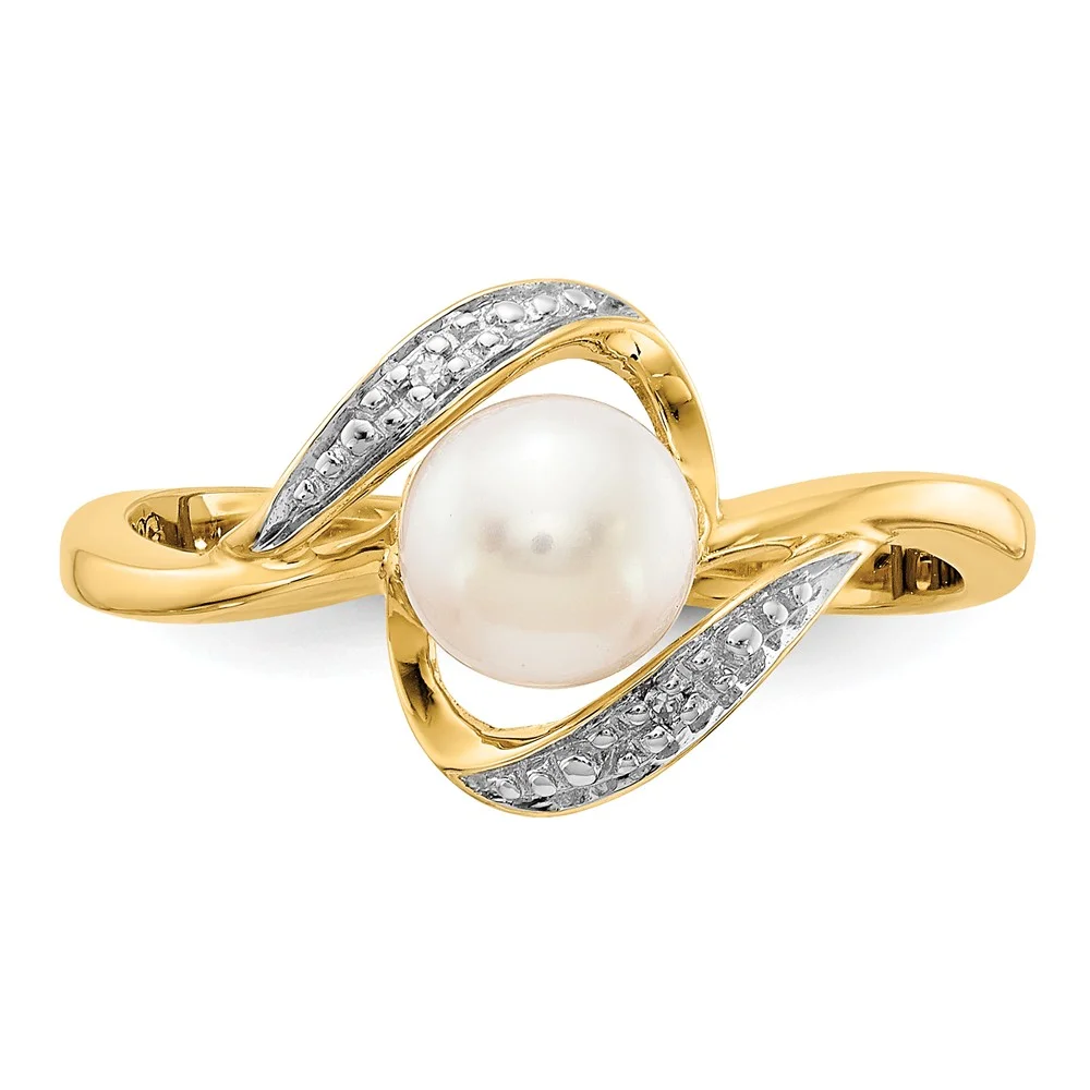Real 14kt Yellow Gold Diamond and FW Cultured Pearl Ring Size: 7; for Adults and Teens; for Women and Men