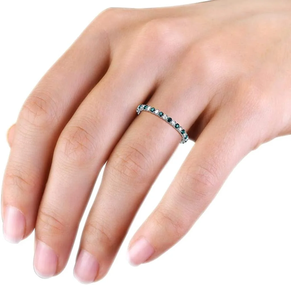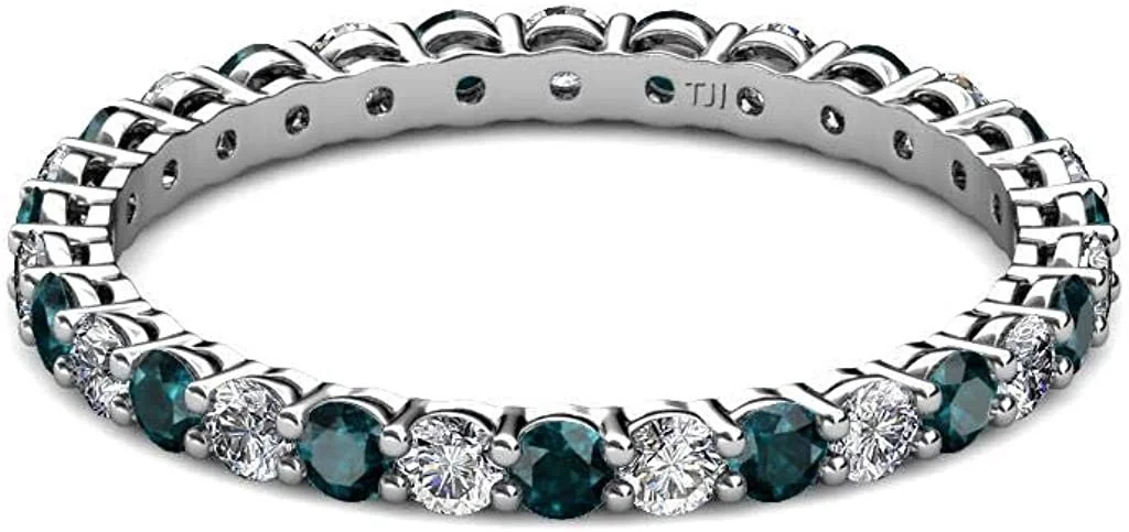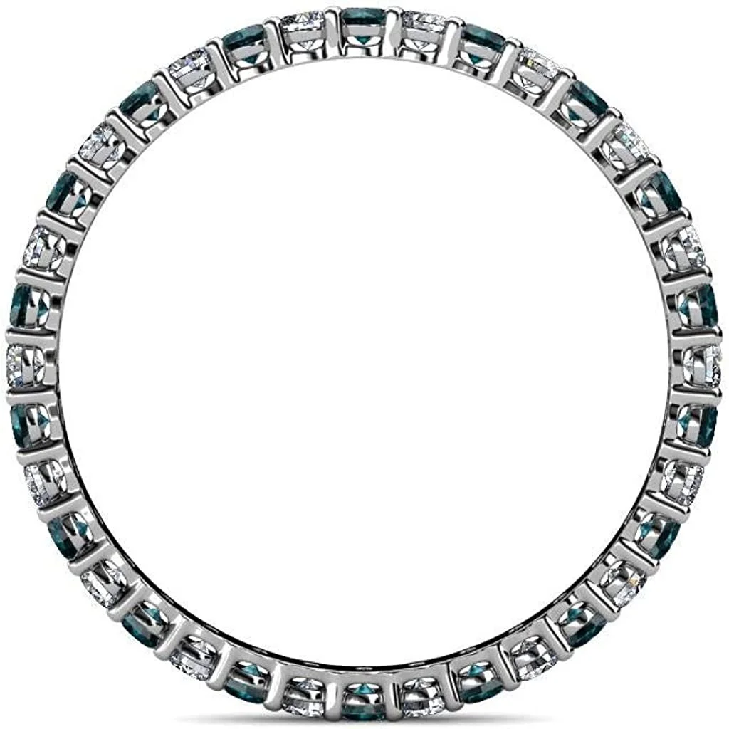 London Blue Topaz & Lab Grown Diamond 3/4 ctw Women Eternity Ring Stackable 14K Gold