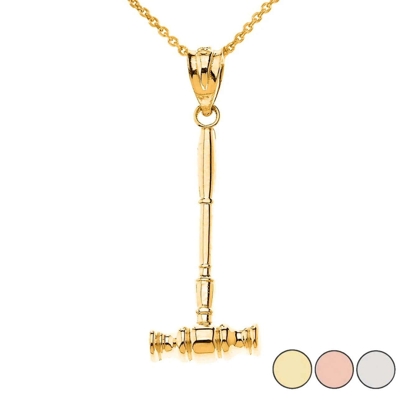 JUDGE AUCTIONEER GAVEL PENDANT NECKLACE IN SOLID GOLD (YELLOW/ROSE/WHITE) : 10K Pendant with 16" chain