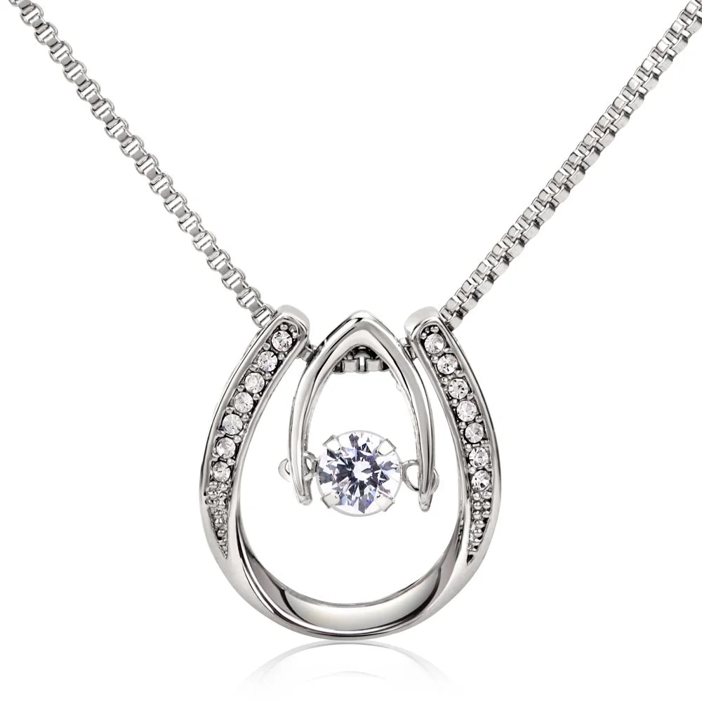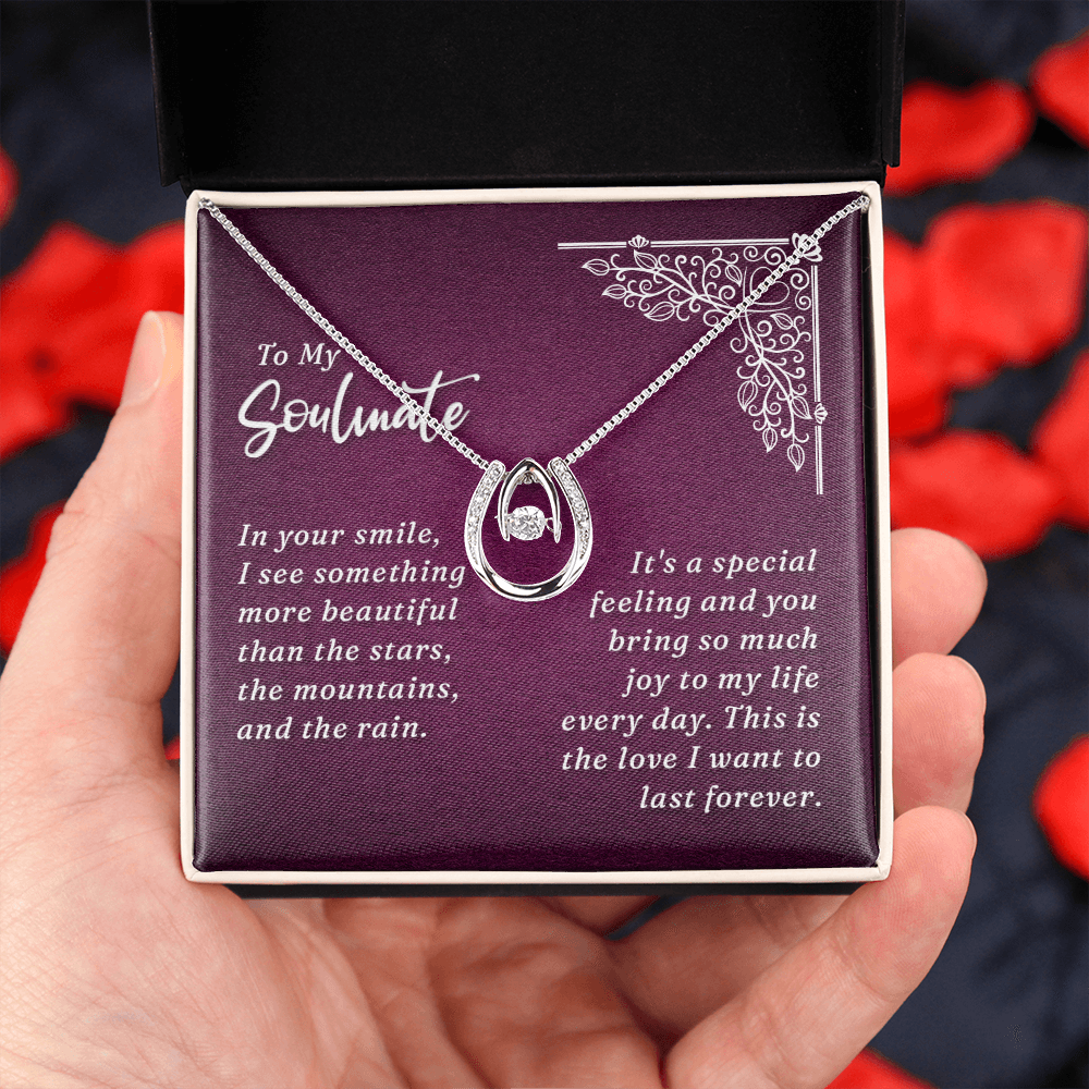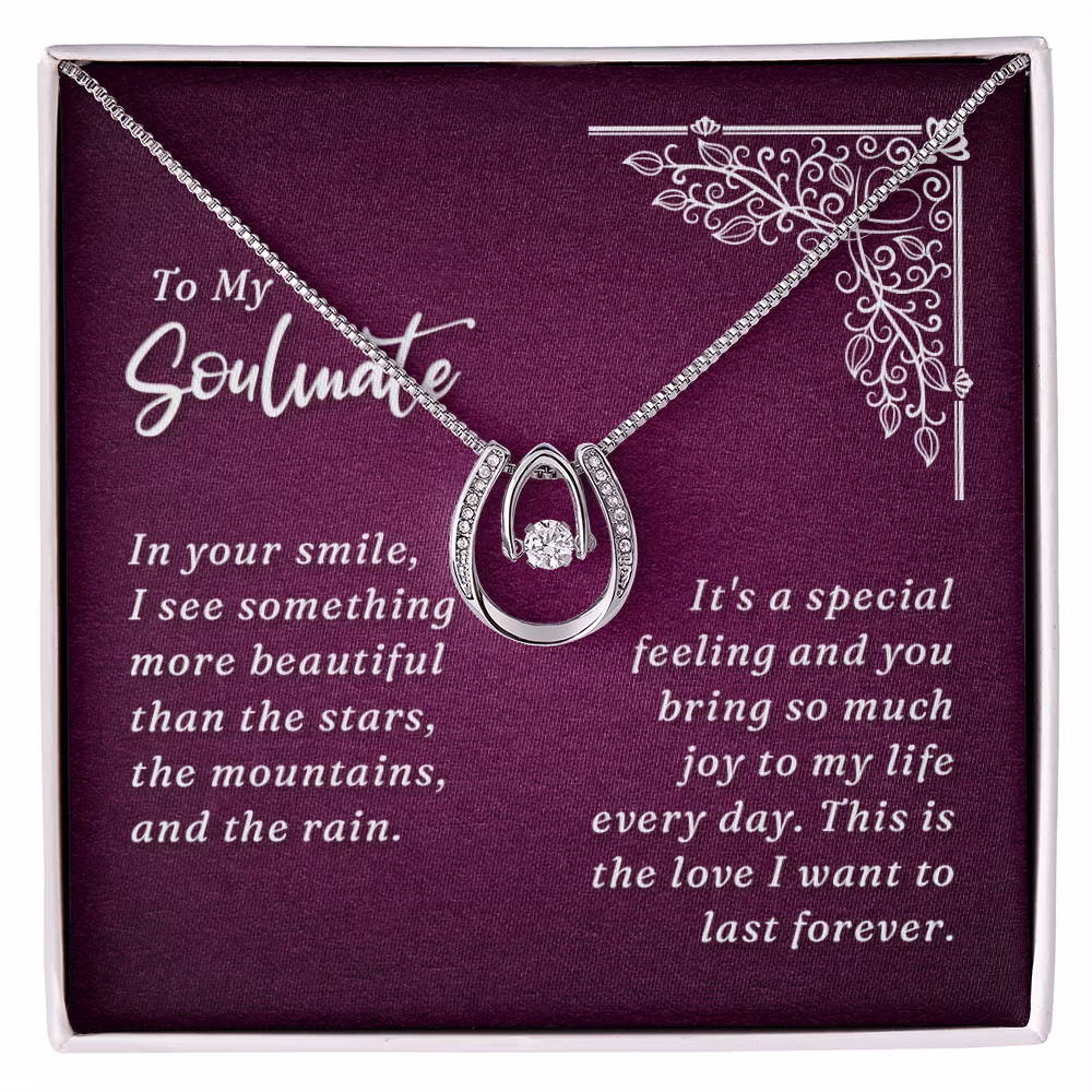 To My Wife In Your Smile Lucky Horseshoe Necklace Message Card 14k w CZ Crystals
